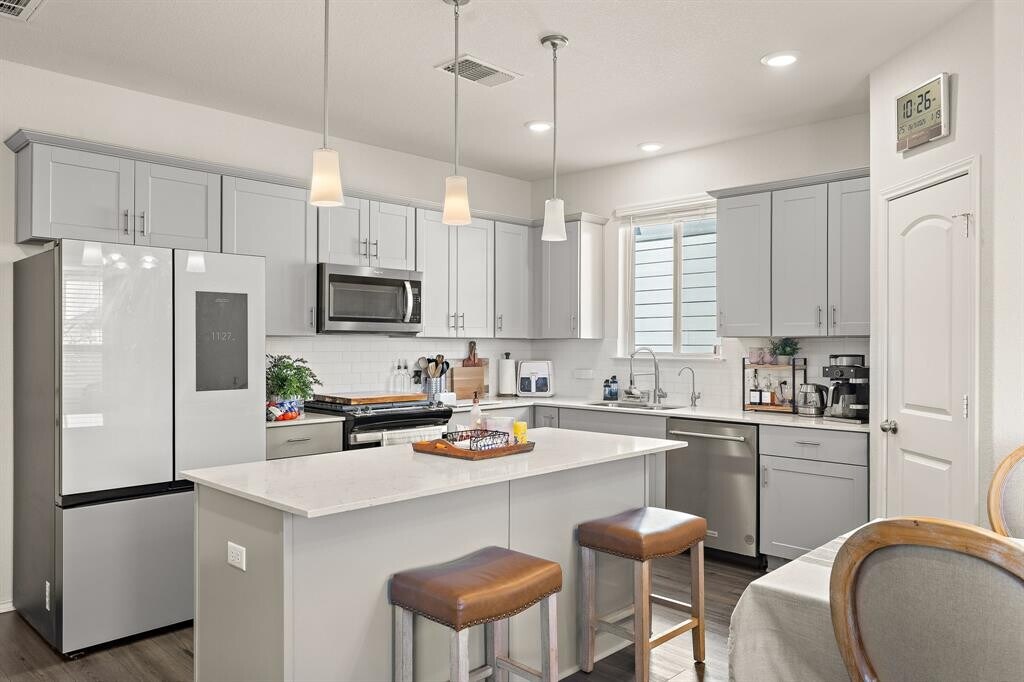Welcome to 149 Fiery Skipper Lane, a beautifully designed two-story home that blends modern finishes with everyday comfort. With 4 spacious bedrooms, 2.5 baths, and multiple living areas, this home offers the flexibility you need, whether you’re working from home, hosting friends, or simply relaxing after a long day. The open-concept first floor is perfect for entertaining, featuring a chef’s kitchen with stainless steel appliances, a walk-in pantry, and a large island that opens seamlessly to the dining and living rooms. Upstairs, the private primary suite feels like a retreat with a spa-style bathroom and closet. A versatile loft and three additional bedrooms give you endless options for office space, a media room, or guest accommodations. Tech-savvy perk alert: the garage is equipped with a Tesla charger, and when you use Tesla as your electricity provider, you’ll enjoy FREE charging every night from 10 PM – 6 AM! Add in a water softener system, plenty of storage, and a private backyard, and you’ve got a home that’s as practical as it is beautiful. Located just minutes from schools, shopping, dining, and major highways, this home combines comfort, convenience, and a touch of luxury. Don’t miss the chance to make 149 Fiery Skipper Lane your next address. Schedule a showing today and step into your new lifestyle!
