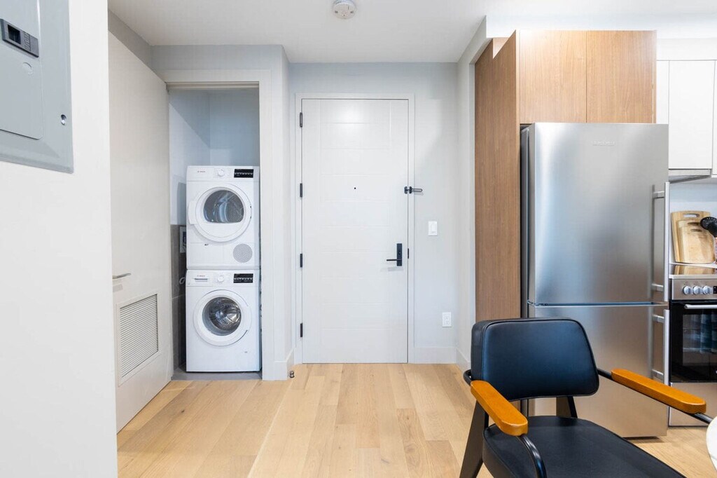 The advertised rate of $5,464/month is the lowest available price, based on a 30 day(s) stay with a move-in date of March 18, 2026. Rates vary depending on the duration of stay, season, and other parameters. For exact pricing and additional pricing components, please visit our website and enter your desired move-in and move-out dates. The rate is applicable when billed upfront; it can be higher if billed in multiple payments. Immerse yourself in the ultimate luxury experience with this sophisticated Greenpoint condominium available for rent. Boasting a rare 1-bedroom, this brand new and exclusive elevator building offers the perfect blend of comfort and style. With floor-to-ceiling windows, designer kitchen and bath, and a spacious living room, this stunning residence is the epitome of elegance. Enjoy the convenience of having a washer and dryer in the unit and an elevator for ease of access. This brand new and modern 1-bedroom, 1-bath apartment located in prime Greenpoint is the perfect place for anyone visiting New York for work or pleasure. With subway stations conveniently located all around, you'll have easy access to explore all the city has to offer, including a wide variety of restaurants and cuisines. Completely new and designed with great emphasis on comfort, luxury, and detail, this homey apartment is bright and full of light, with a warm and sophisticated ambiance. The kitchen is fully equipped with brand new appliances, including a washer and dryer, and the apartment is furnished with modern and chic decor throughout. Featuring a spacious and fun living area with a flat screen TV and sofa bed, a dining table, and great closet space throughout the apartment, this space is perfect for unwinding after a long day exploring the city. The bedroom features a luxurious queen-size bed, and high-speed Wi-Fi is available throughout the apartment. Fresh linens, towels, and extra pillows are also provided. This new modern boutique building features video intercoms and a security system for your peace of mind. With all the amenities and its prime location, it will be almost impossible to say goodbye to this apartment and location. With its queen-size bed and sofa bed, the apartment is perfect for 2-3 people, but an air mattress can be provided at your convenience, free of charge, to host a fourth. Greenpoint is a neighborhood located in the northernmost part of Brooklyn, New York City. It is bounded by the East River to the west, Newtown Creek to the north and east, and Williamsburg to the south. Known for its Polish-American heritage, Greenpoint has a thriving arts and creative scene, with a wide variety of independent shops, restaurants, and cafes. The neighborhood is also known for its waterfront parks and recreational spaces, as well as its easy access to transportation via several subway and bus lines. [SI]
