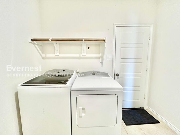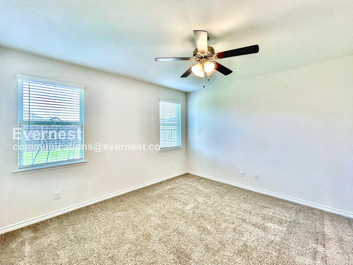 This single-family home offers a broad range of practical features designed to enhance everyday living. The home includes a convenient attached garage, providing direct access to the interior. For culinary enthusiasts, the kitchen is equipped with a gas range, dishwasher, garbage disposal, microwave, and refrigerator, as well as a range hood/vent hood for efficient ventilation. Smart locks offer an updated security solution while the central air and heat system ensures year-round comfort. Flooring options vary from carpet, tile, to wood plank, accommodating different practical needs and aesthetic preferences. Large closets offer ample storage space, and the included washer/dryer streamlines laundry tasks. Remote access adds additional ease of entry, and a ceiling fans contributes to indoor climate control. The property features a fenced yard and patio, creating opportunities for outdoor enjoyment, supported by a sprinkler system for easy maintenance. A brand new Elementary school, Kathy Kirkpatrick Elementary School, opened fall 2025 and is in walking or biking distance for kids. Fishing pond (catch and release), Pool and playground are an 8 minute walk away. The neighborhood regularly plans family friendly activities like movie nights in the park, food trucks on the weekends, or Easter egg hunts, etc. 1 Gig internet service for $65.95/month. Please confirm service availability with our team before activation. Pets: No. Residents are responsible for all utilities. Application; administration and additional fees may apply. Pet fees and pet rent may apply. All residents will be enrolled in the Resident Benefits Package (RBP) and the Building Protection Plan, which includes credit building, HVAC air filter delivery (for applicable properties), utility setup assistance at move-in, on-demand pest control, and much more! Contact your leasing agent for more information. A security deposit will be required before signing a lease. The first person to pay the deposit and fees will have the opportunity to move forward with a lease. You must be approved to pay the deposit and fees. Beware of scammers! Please contact Evernest Property Management at before leasing. Evernest will never request you to pay with Cash App, Zelle, Facebook, or any third party money transfer system. This property allows self guided viewing without an appointment. Contact for details.