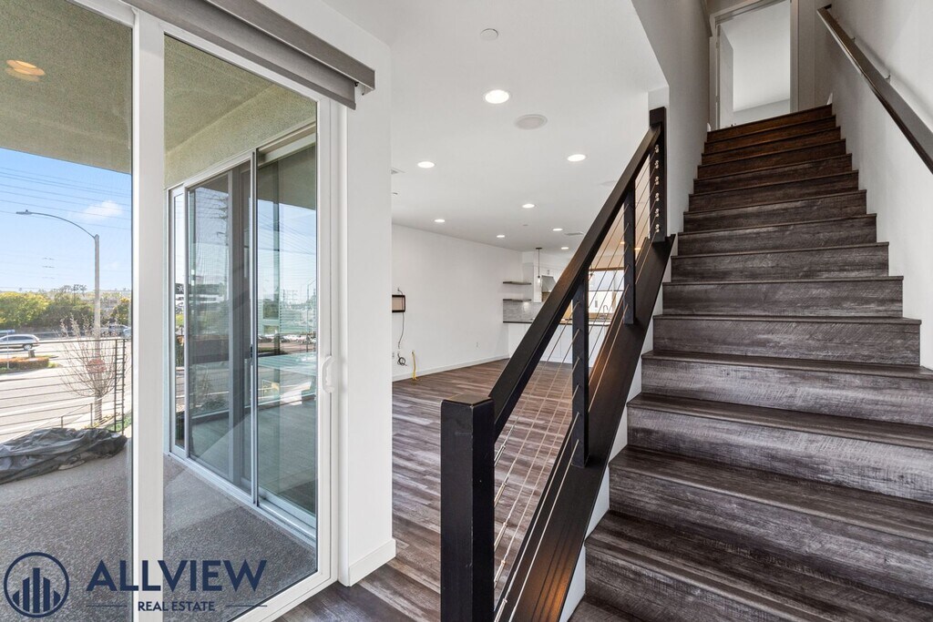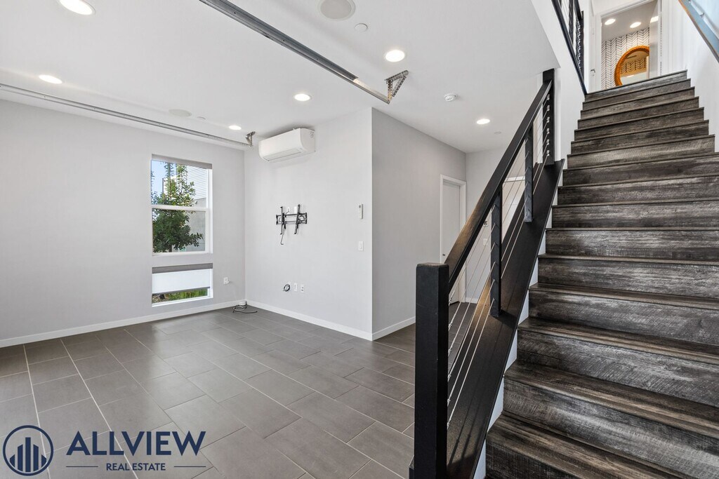 Apply now: This home boasts cool contemporary finishes, recessed lighting, and a rooftop deck. Enter through the downstairs work space with a roll up garage door and an ADA compliant bathroom. Perfect for an in-home office or second living room! Open the glass roll up door and enjoy those warm ocean breezes on the patio with friends and family. You'll also find a 3/4 bath complete with a tiled shower, as well as the two car garage. Head to the second floor where you are greeted by a powder room that makes a statement with blue chevron wallpaper. The main living and dining areas are ready for entertaining with a pre-installed tv mount and a balcony that is perfect for watching the sunrises with your morning coffee. The kitchen features stainless steel appliances, stone countertops, white cabinets, and a discreet butler's pantry! The third floor leads you up to the spacious Master Bedroom, and an en suite with a double sink vanity, grey subway tile shower, and walk-in closet. Down the hall is the laundry closet with washer/dryer included, and a secondary bedroom which features its own en suite bathroom! Finally head up to the rooftop deck where you can relax after a long day and watch the sunset with dinner, a cool beverage, or good company! Enjoy easy access to the 55 freeway and Pacific Coast Highway. Minutes away from Downtown Costa Mesa, Newport Beach, Balboa Island, and so much more!