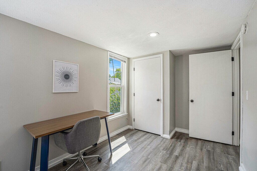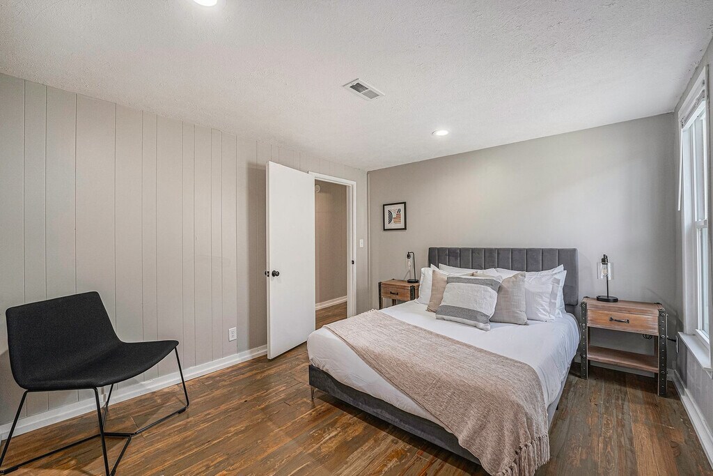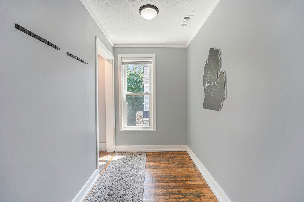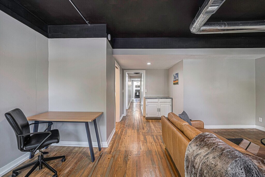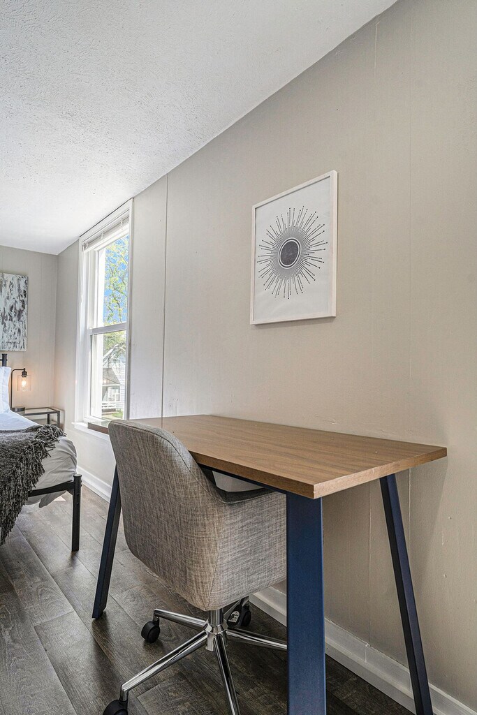 Feel at home in this renovated apartment, "The Loft Life", located in a safe area just a few miles from the hospitals on Medical Mile. This unit is in the heart of Grand Rapids and within walking distance to many top locations, making it a great extended stay for traveling professionals and others in need of temporary housing. This industrial modern space boasts two intentional workspaces and lots of storage. The kitchen is stocked with dishes, silverware, cups, mugs, wine glasses, pots and pans, kitchen utensils, dish soap, sponge, hand soap, garbage bags, a fire extinguisher, cleaning solution, cleaning rags, kitchen hand towels, oven mitts, leftover containers, a coffee pot, toaster, knives, a cutting board, and coffee. The bathroom is stocked with hand soap, towels, garbage bags, a hair dryer, and a first aid kit. The mattress has a mattress protector, and the pillows have pillow protectors that are washed between each stay. Free street parking is available, and public bus stops are nearby. This apartment is centrally located to everything in Grand Rapids. You can be to any highway or in the heart of downtown in less than 5 minutes. There are many bus stops nearby, as well as numerous electric scooters and bikes for rent across the city. Uber and Lyft are readily available throughout the city. The neighborhood is very safe and quiet with great walkability and is near the hospitals. No pets are permitted. All rentals will be a minimum of 30 days. [SI]