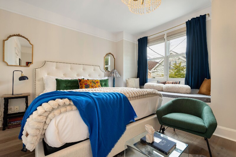 Property Id: 2252424 Step into a reimagined Victorian with a cosmopolitan San Francisco twist. This two-bedroom home blends deep blues, greens, and whimsical touches with an open kitchen and island dining. The hippy-style backyard offers a relaxed space to unwind. Note: This is a private lower level condo. Some noises can be heard from above unit. Keep in mind this is city living with the usual city sounds.