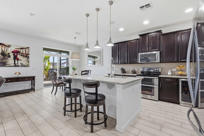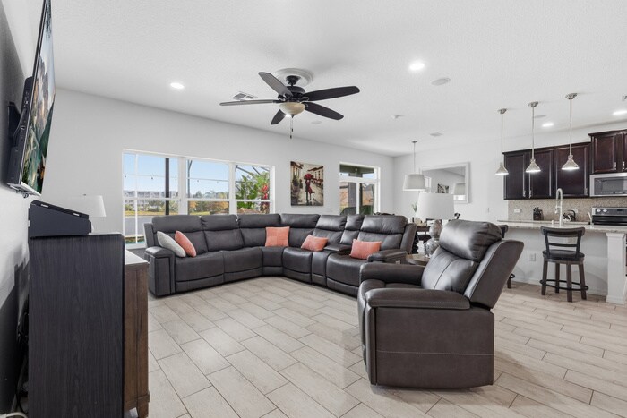 Welcome home to a stunning waterfront pool home that combines elegance, comfort, and the serene beauty of Lake Nona living. This spacious four bedroom residence is carpet free with two and one half baths and has been freshly painted throughout, creating a bright and clean interior that feels move in ready. There are also two flex spaces on the first floor, which can be used as offices or play rooms. Tranquil water views provide a peaceful backdrop for daily living, and the screened in pool and lanai provide a private retreat for relaxing afternoons or effortless entertaining. The home is equipped with solar panels, delivering exceptionally low utility costs and modern convenience. Residents will enjoy the benefit of being zoned for top rated Lake Nona schools, including the newly built Luminary Elementary and Luminary Middle School. Living here is maintenance free, as pool maintenance and lawn care are included. Perfectly positioned in one of Orlando’s most desirable communities, you will enjoy being only twelve minutes to the vibrant Lake Nona Town Center and approximately eighteen minutes to Orlando International Airport. Boutique dining, shopping, wellness, and entertainment are all within easy reach, creating a lifestyle that feels both elevated and convenient. Available for move-in February 7th, this is a rare opportunity to secure a beautifully maintained waterfront home with luxury finishes and an exceptional location. Contact us to schedule a showing.