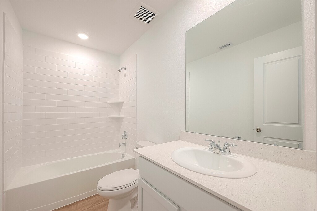 A floor plan with a smart layout. The front door leads to an open-concept living area ideal for daily activities and entertaining guests with a modern kitchen,dining room,and family room,all side by side. Two bedrooms share a hall bathroom at the front of the home,while the owner’s suite is tucked into the back with a private bathroom and a large walk-in closet. MLS# 80192708