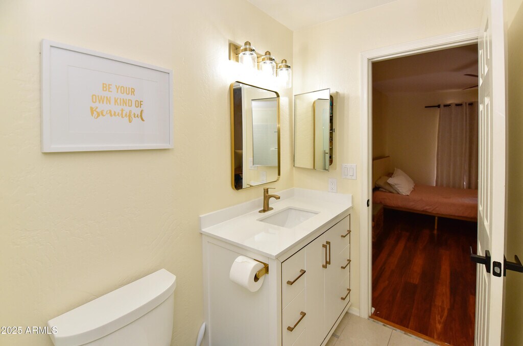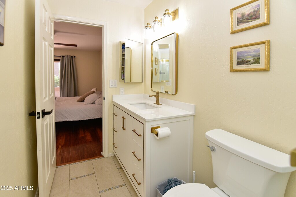 Charming Single-Level Condo with Modern Upgrades in Prime Fountain Hills Location! Welcome to this beautifully updated ground-level condo that exudes pride of ownership throughout. This spacious and well-appointed home features two master suites,each offering walk-in closets and gorgeously renovated bathrooms with crisp white cabinetry,elegant gold hardware,and upscale fixtures for a touch of luxury. The open-concept living space is ideal for comfort and entertaining,with a gorgeous kitchen boasting granite countertops,easy-care appliances,a stylish breakfast bar,and plenty of cabinetry. Whether you're a casual cook or love hosting,this kitchen is sure to impress. Step outside to your extra-large covered patioa rare find!