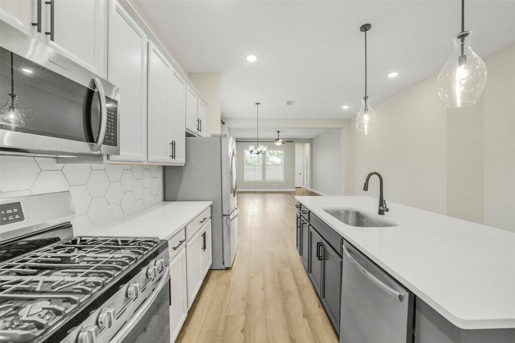 FABULOUS 1-STORY HOME IN BRIDGELAND PARKLAND VILLAGE! This beautiful,energy-efficient DAVID WEEKLEY home includes 2 bedrooms/2 full baths. 3rd Bedroom converted into a HOME OFFICE/STUDY but can easily be used as a flex room/bedroom. Kitchen features designer lighting,stainless steel appliances with REFRIGERATOR,convection oven with 5-burner gas range,detailed island with breakfast bar,custom cabinets,modern backsplash,and is open to the Living Room. Spacious Primary includes En Suite with HUGE Dual Showerhead Shower,dual vanities,and SPACIOUS walk-in closet. Other features of this home include high ceilings,neutral color palette,recessed lighting,contemporary finishes,2-in. faux wood blinds,tile and vinyl plank in all living spaces-carpet only in bedrooms,lots of storage space and so much more! Utility Room includes Washer & Dryer!!! NO BACK NEIGHBORS! Zoned to top-rated Cy-Fair Schools and close to EVERYTHING! AVAILABLE FOR IMMEDIATE MOVE-IN! Come see today! MLS# 51381487