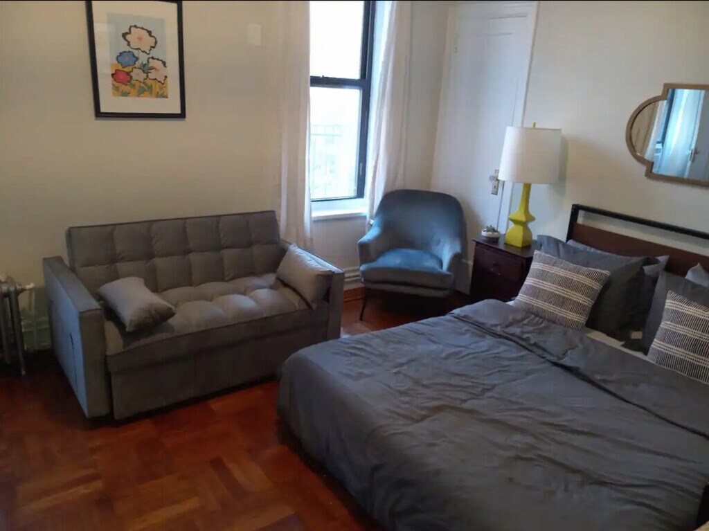 Feel at home in this charming Upper East Side studio apartment. This centrally located home is fully equipped with all the basics and necessities for your convenience. This awesome sunny studio apartment features a comfortable mattress, a flat screen TV, black out curtains, Wi-Fi, a kitchen, and a bathroom. Includes an office desk. The apartment features a queen-size bed and a sofa bed.