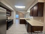 Welcome to this bright and inviting 3 bedroom, 2.5 bath home tucked in a desirable NEISD community. Inside, you'll find soaring ceilings, large window seats, and abundant natural light that highlights the new luxury vinyl plank flooring and soft taupe paint tones throughout the downstairs. The main living area features a gas fireplace, perfect for cozy evenings, and flows easily into the dining and kitchen space. The kitchen comes equipped with a refrigerator, microwave, and stove/oven. A convenient half bath is located downstairs for guests. Upstairs, all bedrooms are thoughtfully arranged for privacy. The spacious primary suite offers a relaxing en-suite bathroom with a double vanity and a walk-in closet. Outside you will find and enjoy a large covered patio, mature shade trees, and a privacy fence-ideal for gatherings or quiet mornings outdoors. A roomy two-car garage completes the home. Pet-friendly and move-in ready, this property blends comfort, style, and convenience.