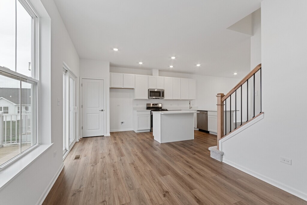Eabad HaqueAn elegant three-story urban townhome designed with three bedrooms, two full bathrooms, and a powder room-ideally suited for contemporary lifestyles. The primary floor features an inviting open-concept design, encompassing a generous great room, sophisticated dining space, and a gourmet kitchen highlighted by an expansive quartz island, 42" upper cabinetry, stainless steel appliances, and a convenient walk-in pantry. On the upper level, retreat to a tranquil owner's suite complete with a spacious walk-in closet and luxurious bathroom offering dual white undermount sinks and a walk-in shower. The floor is rounded out by two more bedrooms, another full bathroom, and a conveniently located second-floor laundry room. The ground-level flex area offers adaptable use, perfect for a home office, fitness studio, or entertainment room. Enhancing the home's appeal are luxury vinyl plank floors, quartz surfaces, energy-efficient LED lighting, and stylish railings throughout. Embrace premier suburban living at Keller Farm, an innovative community arriving soon in Plainfield, Illinois. This dynamic new development will include outstanding onsite features such as a sprawling nearly 30-acre park, a comprehensive trail network, and nearly five acres of extra green space-ideal for outdoor activities, family gatherings, and daily leisure. Nestled in the growing town of Plainfield, Keller Farm combines quaint small-town appeal with up-to-date amenities. The bustling downtown area provides easy access to unique boutiques, neighborhood eateries, major retailers, and grocery stores. Whether handling daily tasks or dining out, essentials are mere minutes away. Plainfield is renowned for its top-tier recreation facilities, scenic parks, and ongoing community celebrations.
