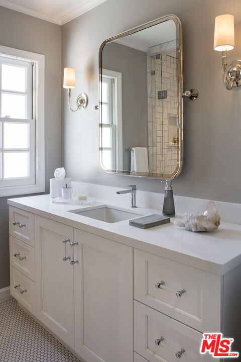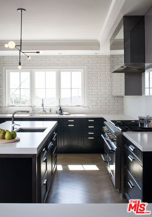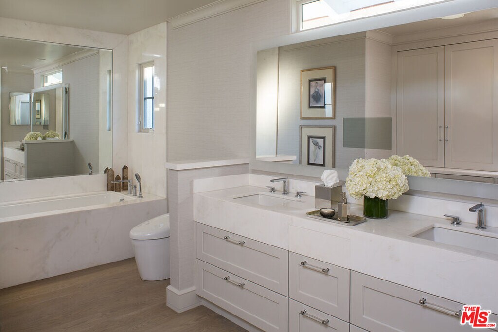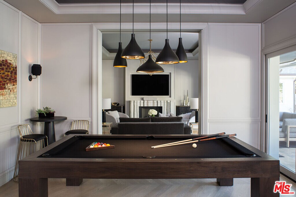 Beautifully renovated single-story California Ranch home situated on a large lot in prime Huntington Palisades. This elegant 5-bedroom, 4.5-bath residence plus office offers an exceptional open floor plan and seamless indoor/outdoor living. The gourmet kitchen features top-of-the-line appliances, a breakfast bar, and a built-in banquette, and opens to a spacious family room with custom built-in entertainment center. Expansive glass sliding doors lead to a covered patio with built-in heaters and a beautifully landscaped backyard with mature trees, fire pit, pool, and spa, ideal for entertaining and everyday enjoyment. The home also offers a formal dining room and a living room with fireplace overlooking the garden. The elegant primary suite includes a luxurious spa-like bathroom and walk-in closet. In addition to four secondary bedrooms and three and a half baths, there is a dedicated home office with extensive built-ins. Additional features include ocean and city light views, high ceilings, multi-zone HVAC, hardwood floors, and a three-car garage with direct access. A rare opportunity to live in one of the most sought-after neighborhoods on the Westside and enjoy the best of the California lifestyle. MLS# 26644293
