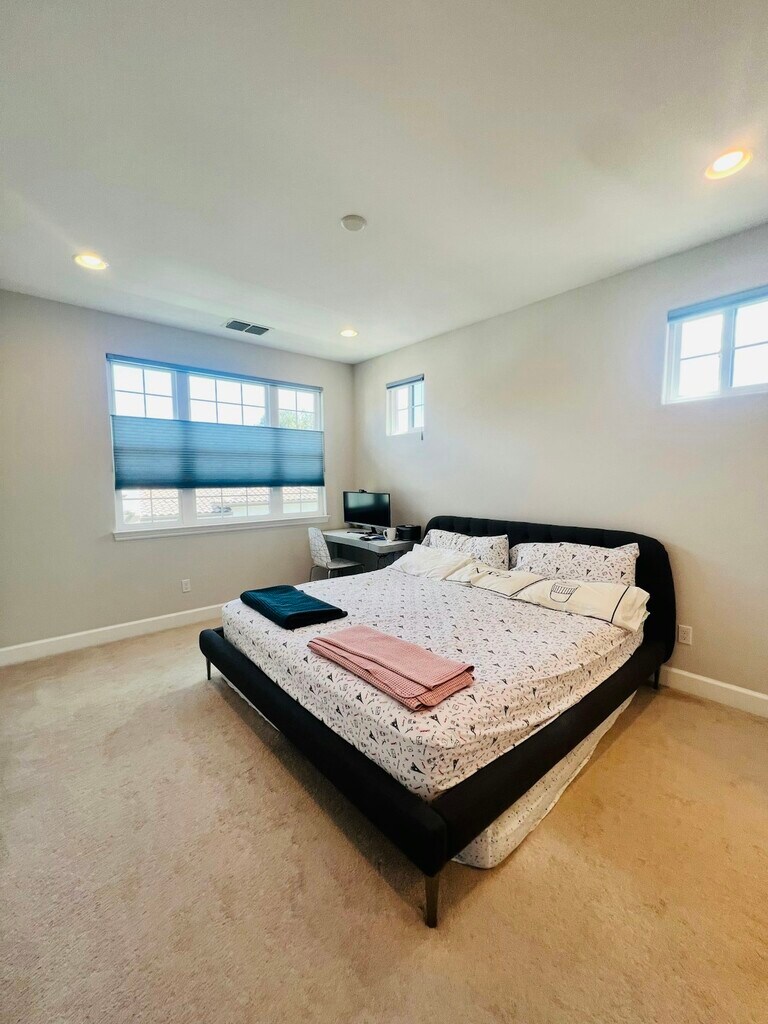 Welcome to 1494 Arcangel Ter, Pleasanton, CA 94588. This stunning three-story townhome, built in 2017, offers approximately 1,954 square feet of well-designed living space. The first floor features a very convenient one-bedroom suite with its own private bathroom, ideal for multi-generational living, guest accommodations, or a separate home office. The second floor consists of a beautifully designed kitchen with a spacious pantry, a half bathroom for convenience, and a well-sized living room and dining room combination that opens to a private balcony. This level provides an excellent layout for both everyday living and entertaining. The third floor features two additional well-sized bedrooms along with a spacious primary suite that includes a double vanity and walk-in closet. This level also includes a full hallway bathroom and a washer and dryer for added convenience. Additional features include energy-efficient dual pane windows, a water softener system, and a tankless water heater. Located in a highly desirable area with top-rated Pleasanton schools, the home is directly across from Thomas Hart Middle School and close to shopping, Whole Foods, BART, Stoneridge Mall, Highways 680 and 580, and Hacienda Business Park. Minimum credit score: 680 Income requirement: 3x the monthly rent All occupants over the age of 18 must complete a credit and background screening. Please submit a formal inquiry or call with any questions or to schedule a showing.