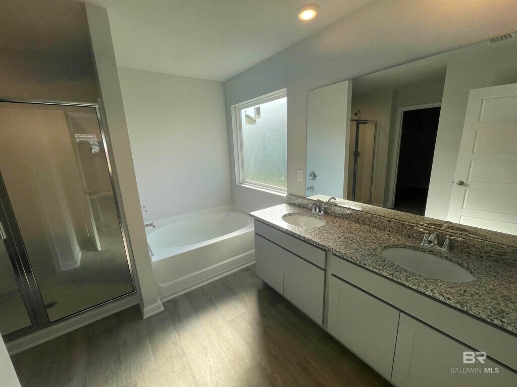 4 bed,2 bath home in the Camilla Place Subdivision in Silverhill. Luxury vinyl flooring throughout. Open floorplan,Split bedroom plan. Granite counter tops in kitchen and baths. Double garage. Large laundry room,Covered patio. Primary bath features a walk-in closet,garden tub,standalone shower,double vanity,and a private water closet. ALL appliances included (refrigerator & washer/dryer). Completely fenced.