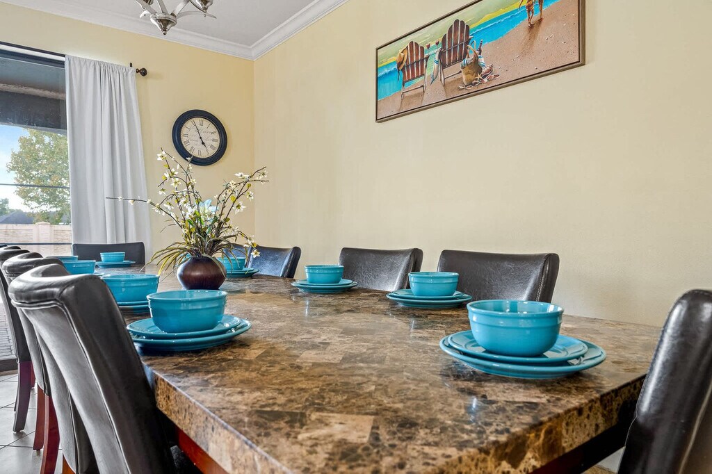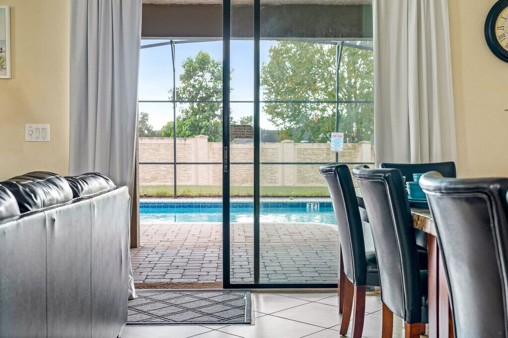 Leave everyday life behind and feel at home in this welcoming paradise designed for relaxation and family fun! Conveniently located just 20 minutes from Disney World, 28 minutes from Universal Studios, and 25 minutes from SeaWorld, this home offers the ideal balance of excitement and tranquility, close to the attractions, yet peaceful enough to truly relax. This home features expansive indoor and outdoor dining areas, a modern kitchen with stainless steel appliances, two comfortable living spaces each with a flat-screen TV, a private pool and hot tub with loungers, a game room complete with a pool table, a complimentary washer and dryer, and an electric vehicle charging station. The fully equipped kitchen includes everything you need to prepare meals with ease, from stainless steel appliances to cookware and utensils. If you would like to add heating for the pool and spa, please request it at least one week in advance. The cost is $35 per day, billed separately. Note that during cold or rainy weather, pool use is not recommended. The pool is serviced weekly, but rain may temporarily affect water clarity due to debris. Situated in ChampionsGate, FL, this gated master-planned community offers a perfect blend of luxury and recreation. Residents and visitors can enjoy championship golf courses, resort-style amenities, and convenient access to Orlando’s world-famous theme parks, including Disney World. Nearby Posner Park provides a variety of shopping and dining options, and easy access to I-4 and 27 makes getting around effortless. Excellent restaurants, shopping, and entertainment options are just minutes away, giving you endless ways to enjoy your vacation. Check-out time is 10:00 AM. Late check-outs may disrupt schedules and could result in a fee of up to $300. This property is self-catering, so supplies are not replenished during your stay. For your convenience, shampoo, conditioner, body wash, hand soap, and one roll of toilet paper are provided per bathroom; detergent pods for up to two loads are provided for laundry; and paper towels, trash bags, dish detergent, sponge, salt, pepper, cooking oil, and a coffee maker (coffee not included) are provided for the kitchen. There is absolutely no smoking and no drugs allowed inside the home or elsewhere on the property. A written notification from the guest and approval by the host is required to welcome one house-trained dog (less than 50 lbs), and a pet fee is required. If guests are found to be in violation of any of these rules, the trusted partner reserves the right to terminate a reservation without refund, and/or pursue monetary fines. [SI]
