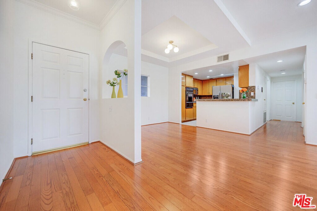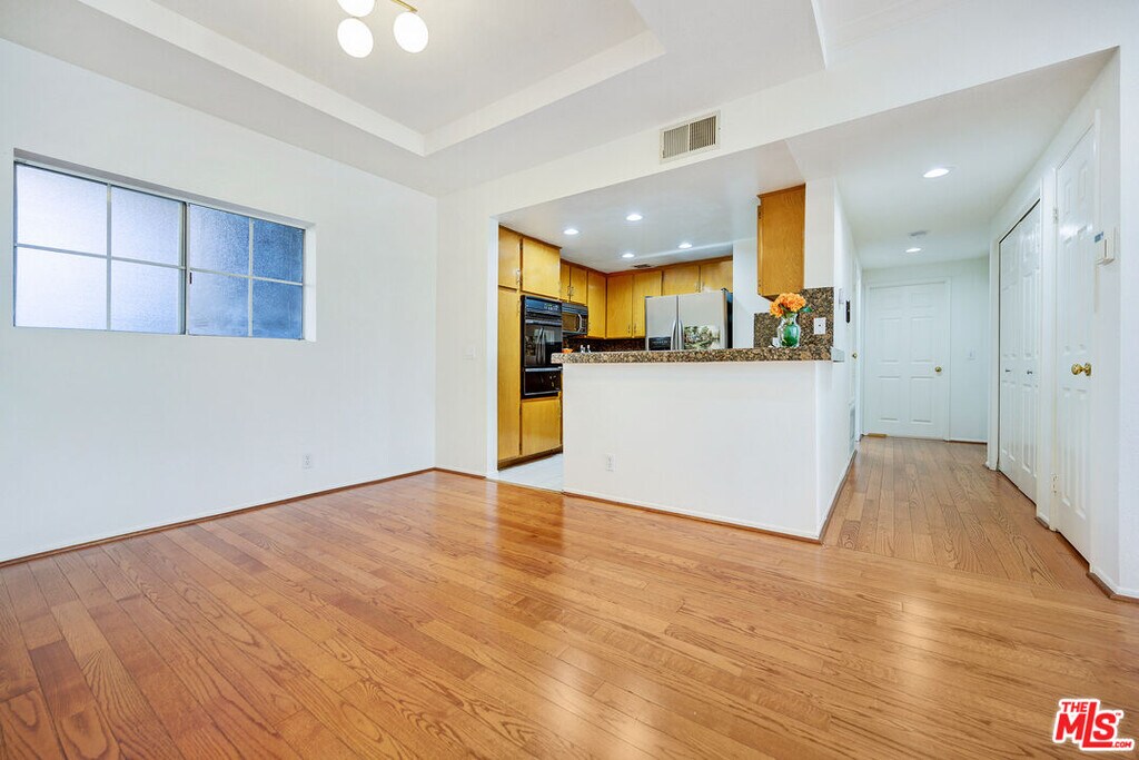 Chic. Elegant. A Rare Find. 2 BEDROOMS/2BATHS PLUS OFFICE/DEN/LIBRARY. Single Level. Prime location in Sherman Oaks. Luxury Condominium Building. KITCHEN AND 2ND BATHROOM HAVE BEEN UPDATED AND NOW ARE IN SPARKLING WHITE COLOR! This tastefully remodeled spacious condo features modern luxury and sophistication. Abundance of windows allow the natural light to create a warm and inviting space. Recessed lighting, granite counter tops, hardwood floors, wood shutters throughout. Master bedroom is in a separate wing with en-suite bathroom with walk-in closet and lots of light. SIDE-BY-SIDE LAUNDRY with ample storage and closet space. Amenities include contemporary community room and lobby, state-of-the-art gym, pool, - living at its finest! MLS# 25590963