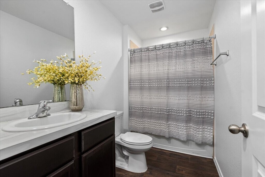 Charming single-story home with no back neighbor for added privacy! Light and bright with neutral paint and lots of windows! Wood vinyl plank,carpeted bedrooms,interior utility room,and an open floor plan. The kitchen offers a breakfast bar island and stainless steel appliances while the master suite has dual sinks and a huge closet! Enjoy outdoor entertaining under the covered patio in the spacious backyard. Great amenities including a pool,splash pad,pavilion,playground,elementary school,and walking paths! Close proximity to TX 242 and I-69! MLS# 93978838