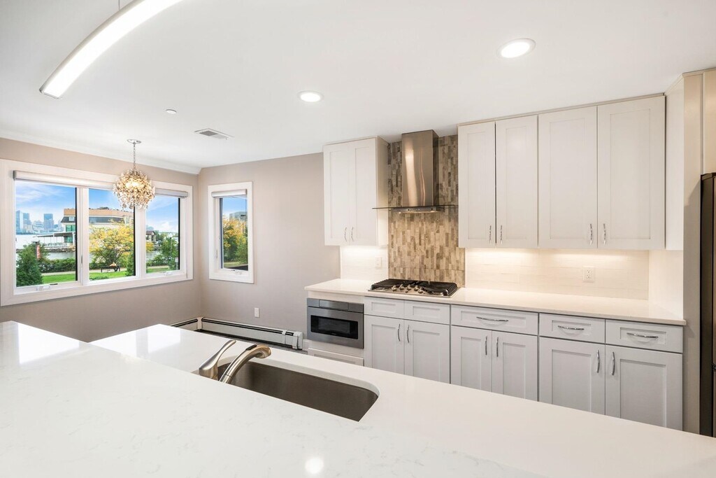 Roc Harbour Townhome/Condo – 14A Riverview Circle, North Bergen, NJ 07047 Includes 2-Car Garage + Free Guest Parking. Experience waterfront living at its finest in this beautifully rebuilt (2015) 2-bedroom, 2-bath townhouse-style condo at Roc Harbour on River Road. Offering approximately 1,600 sq. ft. of thoughtfully designed space, this home boasts two private balconies with breathtaking Southeast views of the Manhattan skyline and Hudson River. Property Highlights Fully rebuilt from the studs in 2016 – “like new†condition New roofing and siding with Andersen Series 400 glass doors & casement windows Efficient water-based board heating system + central air conditioning New hot water heater installed 10/2025 ADT security alarm system Italian ceramic tiling in kitchen and bathrooms Contemporary crown and base moldings throughout Engineered 5†oak plank flooring in cocoa bean finish Solid wood interior doors with upgraded hardware Gourmet Kitchen Modern all-white Forevermark soft-close cabinetry GE Profile stainless steel appliances Gas cooktop, separate oven, French-door refrigerator, and Sharp microwave drawer Quartz (anti-microbial) countertops with handmade subway tile backsplash Garbage disposal and designer sink fixtures Living & Dining Open-concept living area with custom gas fireplace featuring black granite framing and hearth Cable-ready above mantle Contemporary lighting fixtures + upgraded LED recessed lighting throughout Bedrooms & Baths Primary suite with walk-in closet, elegant ensuite bath, and private balcony Guest bedroom with ample light and full guest bath Samsung washer/dryer on pedestal storage bases in dedicated laundry room Additional Features Extra-large 2-car garage and storage room with direct access Gated community with no-charge guest parking Centrally located near shopping, dining, and easy NYC commute by bus or ferry Enjoy refined waterfront living with spectacular NYC views — truly move-in ready!