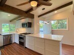Located in Hawaiian Paradise Park and set down a long private driveway, this fenced and gated property sits on a full acre of mature landscaping, offering privacy and solitude. This two-story, 3-bedroom, 2-bath home has a comfortable cabin feel with a mix of updates and rustic character. It’s not a cookie-cutter property—there’s a bit of vintage cabin charm throughout, along with some modern improvements where they matter most. The kitchen has been recently renovated and includes all new soft-close cabinets, quartzite countertops, a propane gas range, a stainless steel refrigerator and dishwasher, plus a walk-in pantry with a stand-up freezer for extra storage. The living room features open beam ceilings, original hardwood flooring, and a wall of sliding glass doors that lead out to the lanai, bringing in plenty of natural light and making it easy to enjoy the surrounding greenery. Upstairs, the primary bedroom is expansive and offers a tree-top view, giving it a quiet, tucked-away feel. It includes an ensuite bathroom with a walk-in shower, dual shower heads, and custom lighting. Outside, the furnished lanai is a great spot to unwind, especially in the evenings—perfect for watching the moonrise through the treetops. Additional features include an on-demand water heater, a spacious yard, and yard service included, so you don’t have to worry about maintenance. Overall, this is a unique home with a laid-back, lived-in feel—ideal for someone who appreciates a bit of space, privacy, and character. Pets are considered with an approved application and an additional pet deposit. Rent: $2600.00 plus GET $122.51 = $2722.51 Security Deposit: $2600.00 Tenant Responsible for Electric, Cable/Internet, Water, Refuse, and GE Tax. No Drugs, No Smoking. Minimum Lease Term: 6 mo. All applicants are subject to a $37 background and credit check. Please drive by the property before submitting an application. Drive by only! Do not access the property