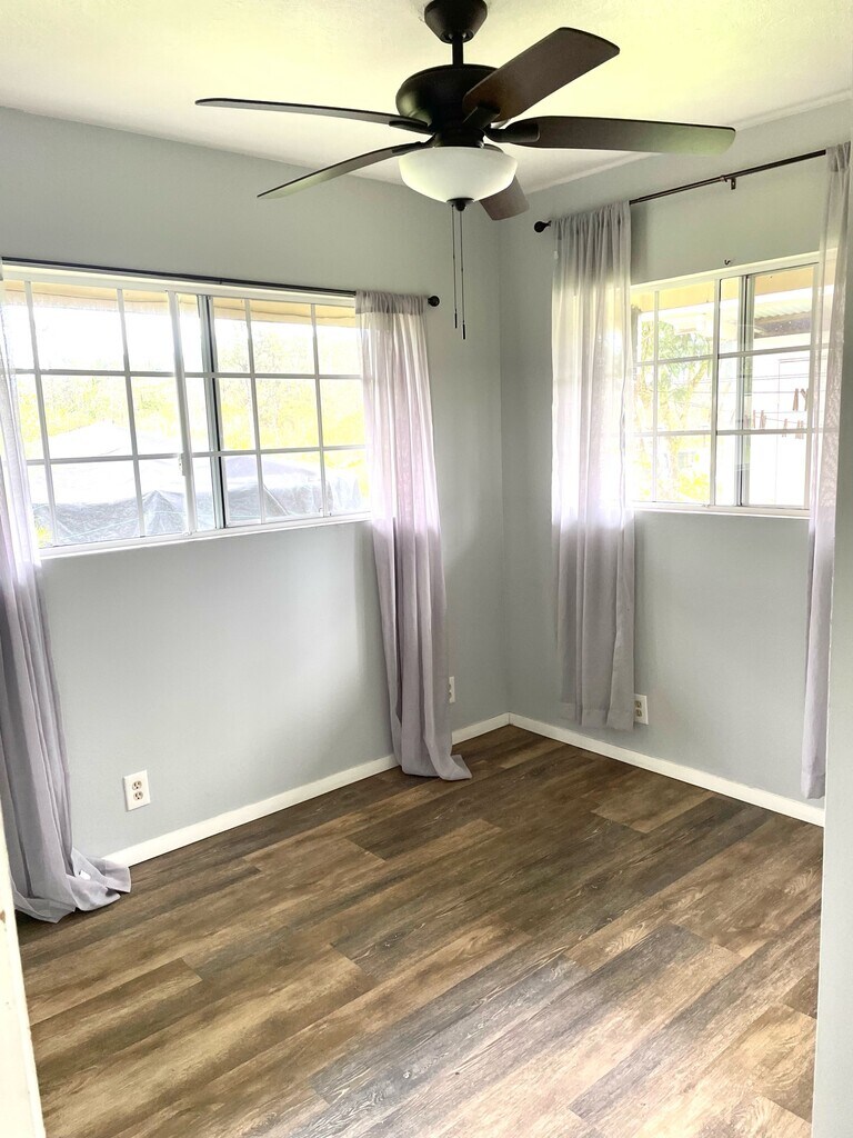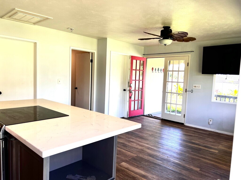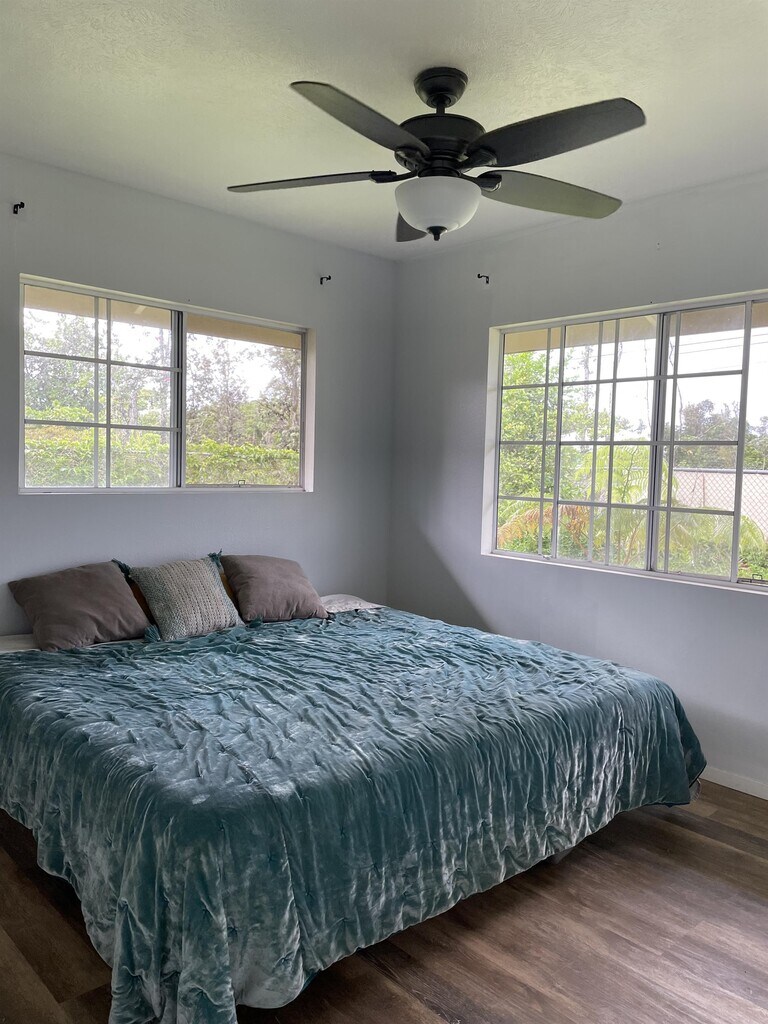Wonderful, pet-friendly property in HPP is available for long-term leasing. The property is fenced and gated. Sweet front porch and a back lanai provide outdoor living space. Ceiling fans, lots of windows, bathroom storage - this one has it all. Tenants pay all utilities; water is catchment. Tenant responsible for part of the yard. Pet Deposit and meet-n-greet approval required for pets. An application is available online at hbr.managebuilding and must be submitted prior to requesting a showing.