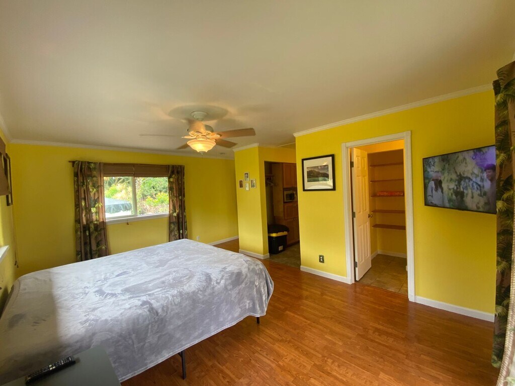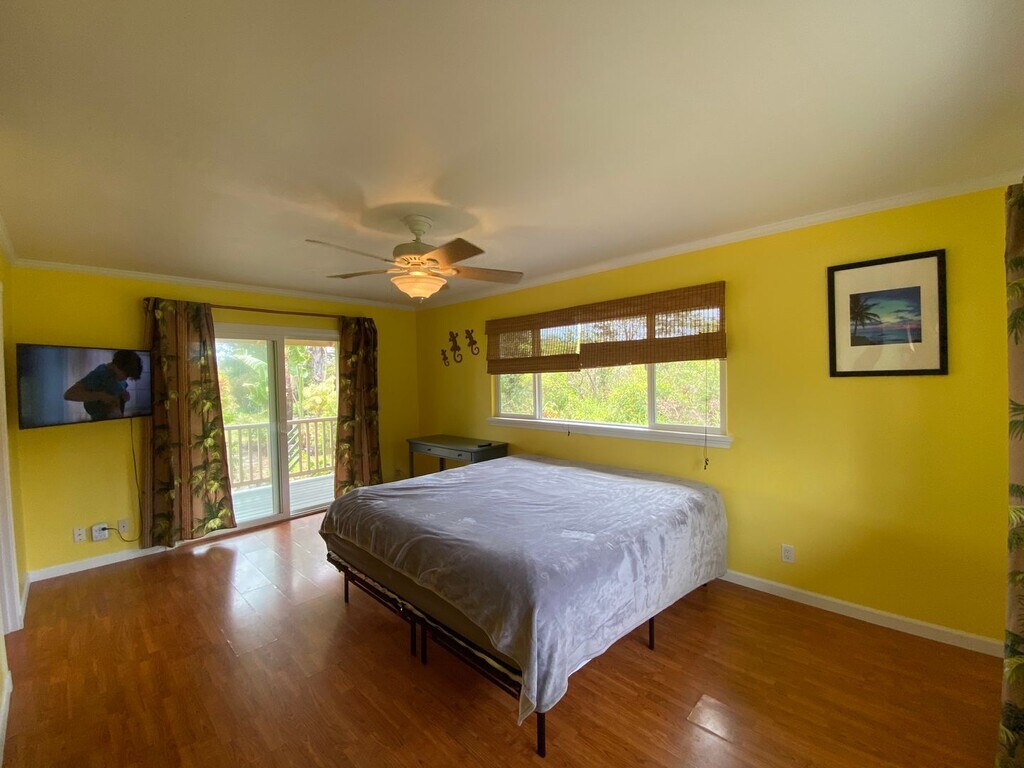 Enjoy space, privacy, and indoor-outdoor living in this unique 3-bedroom, 2-bath home on a full acre in the desirable sunbelt section of Hawaiian Paradise Park. Built in 2008 with 1,344 sq ft of living area, the home is set back on the lot along 4th Avenue, offering a peaceful, tucked-away feel. The layout is ideal for flexibility: the primary suite is separated from the main home and features its own lanai, kitchenette space, and ensuite bath—perfect for added privacy or a home office setup. The main house opens to a large, oversized lanai complete with a picnic table and wall-mounted TV, creating an inviting space for outdoor living and entertaining. Inside, the home is bright and cheerful with a sunny yellow interior, a well-equipped kitchen, and a built-in workstation/desk in one of the bedrooms. Additional features include a washer and dryer, above-ground garden beds for your green thumb, and an outdoor shower—perfect for rinsing off after a day at the beach. A rare blend of comfort, character, and space in a great location. Rent: $2950.00 plus GET $139.00= $3089.00 Security Deposit: $2950.00 Tenant Responsible for Electric, Cable/Internet, Water, and GE Tax. Owner Responsible Yard Service. No Drugs, No Smoking. Minimum Lease Term: 6 Months All applicants subject to a $37 background and credit check.