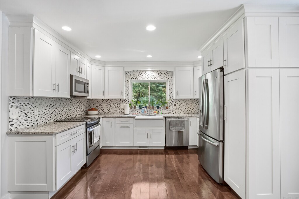 Call for Availability - Tucked away on a peaceful cut-de-sac and boarderd by the serene woodlands of Putnam State Park, this fully renovated contemporary offers a blend of modern luxury and natural beauty. Set on a private 2+ acres, this four bedroom three full bath home is an exceptional retreat just minutes from the heart of Redding. Enter inside to soaring ceilings, clean lines and sun drenched interiors thanks to the expansive windows that frame the surrounding woods. The open concept kitchen with stainless steel appliances, new cabinetry and granite countertops is ideal for entertaining or enjoying your morning coffee. The spacious living room and family room both have fireplaces to cozy up to on cold winter nights. The upper level has four generously sized bedrooms and the primary suite has an en-suite bathroom. This is a rare opportunity to own turnkey contemporary in one of Reddings most scenic locations. MLS# 24133678