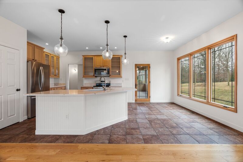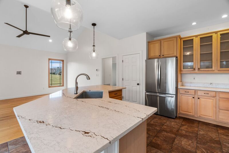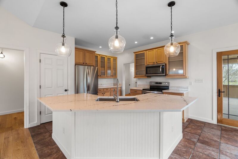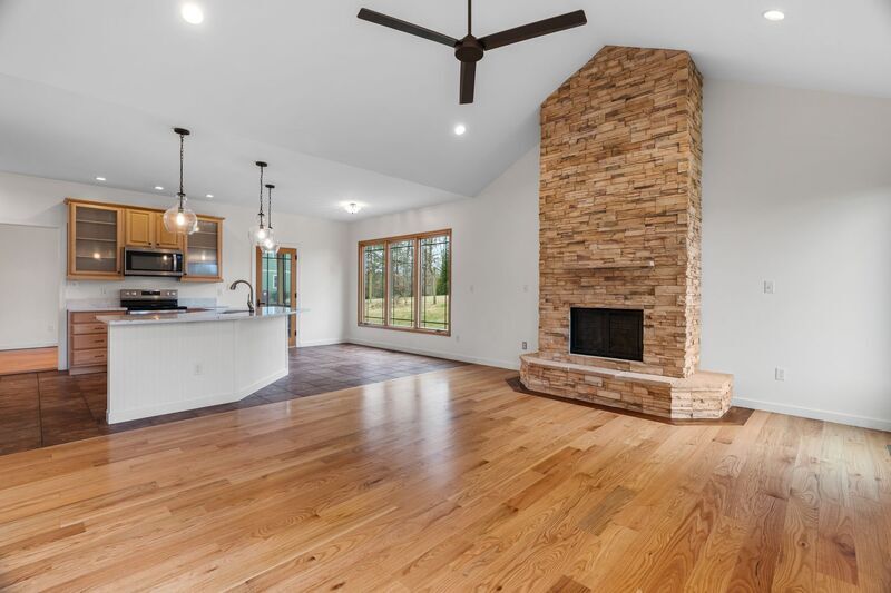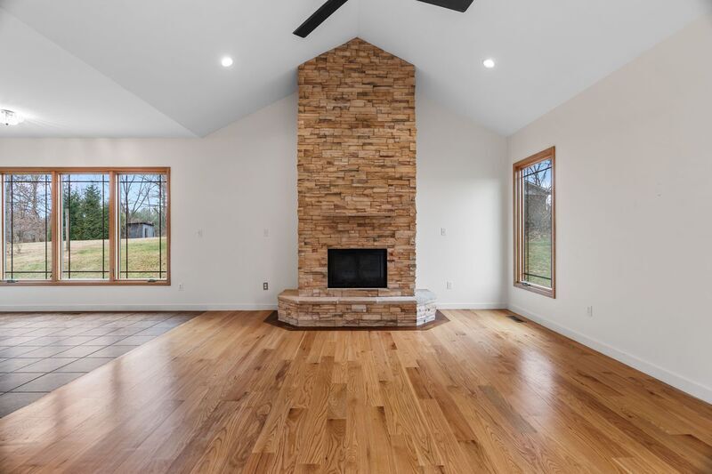 Enjoy peaceful country living in this expansive three-bedroom, three-bathroom home in the established Maplewood Village neighborhood. Set on a generous lot with mountain views, this property offers the space and amenities needed for comfortable living with convenient access to Asheville just eight miles away. The main level welcomes you with an open-concept layout featuring hardwood floors throughout the living spaces. The great room centers around a dramatic floor-to-ceiling stone gas fireplace with propane logs beneath soaring vaulted ceilings, creating an impressive focal point for gathering and entertaining. The kitchen is outfitted with stainless steel appliances including a French door refrigerator with ice maker, over-the-range microwave, electric range, and built-in dishwasher, plus a garbage disposal. Quartz countertops span the workspace and extend to the kitchen island with breakfast bar seating. Glass-front wood cabinets add character while providing display space. Large southwest-facing windows bring in plentiful natural light and evening warmth throughout the year, with views of the tree-lined backyard. Adjacent to the kitchen, a separate dining room with tray ceiling provides elegant space for meals and special occasions. The primary suite on the main level features a tray ceiling, an ensuite bathroom with corner soaking tub, walk-in shower, and double vanity, plus a walk-in closet with built-in storage system. Two additional bedrooms on the main level offer carpet flooring and ample closet space. The finished basement adds significant living space with a second family room and adjacent office or flex space, providing versatility for remote work, hobbies, or additional entertaining area. This level features luxury vinyl plank flooring throughout and includes a full bathroom. Step outside to the screened porch where you can enjoy the outdoors, or relax on the concrete patio. The outdoor firepit provides the perfect spot for evening gatherings. The two-car garage offers generous storage and workspace. This property is fiber-ready for high-speed internet connectivity. Landscaping and lawn maintenance services are included, allowing you to enjoy the spacious yard without the upkeep. Tenant pays all utilities. First lease term is eighteen months. This property is dog-friendly, up to one dog, with a $250 refundable deposit. Sorry, this home does not accept co-signers.