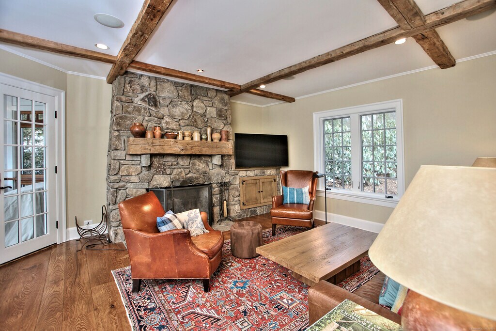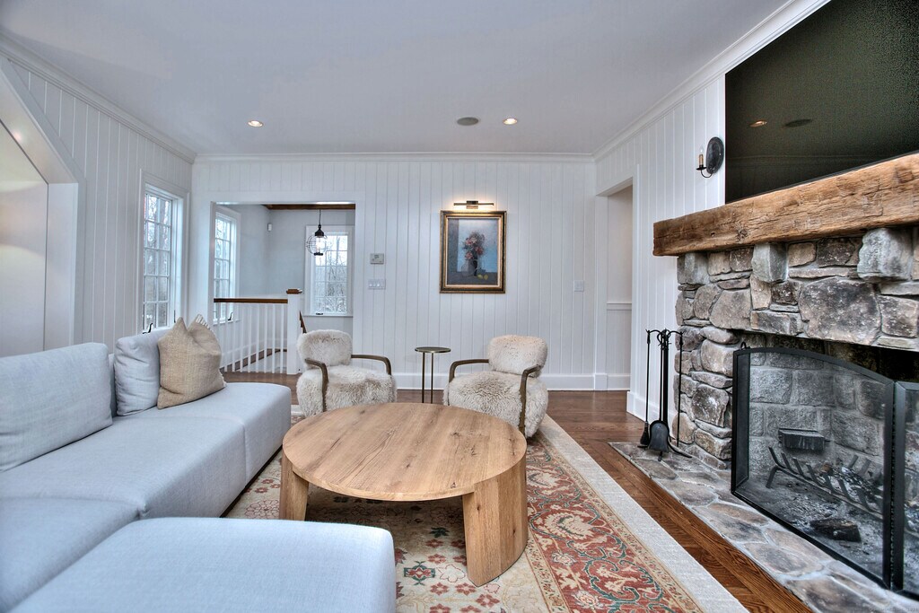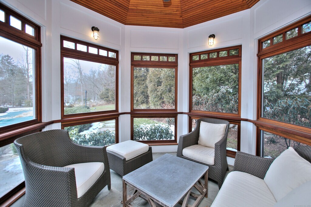 Call for Availability - Meticulously maintained Resort home designed by Peter Cadoux. Luxurious living on over 2 acres of manicured lawns and gardens. Arts and Crafts style home in Move-in condition with the best quality in fit and finish at 5,462 total square feet, completely rebuilt from the ground up in 2007, includes the large gym (with 10' ceilings), full bath with separate steam and sauna, home office and walkout to pool through French doors. Newly and tastefully furnished Living Room, Den and Bedroom decoration. Wide planked hardwood flooring throughout. 4 large bedrooms including Primary Suite with balcony overlooking the glorious backyard and pool. Chef's kitchen stocked with everything you need plus all high end appliances. Butler's Pantry with wine storage. Cozy family room with fireplace, screened 3 season room, Dining Room, Living Room and Music Room with Kawai baby grand piano. World Class fitness room with state of the art Cardio equipment, free weights, and machine weights. Stone pool is among the largest in Westport with spa, stone waterfall and outdoor kitchen. Enjoy the Pool area all day long with gas lit Tiki torches. A one of a kind Property. Convenient to Town, Schools, Train , and all that Westport offers. MLS# 24158373