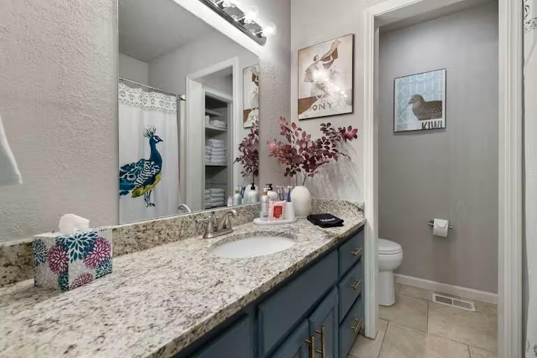 Stunning remodeled retreat in Bella Vista, steps from mountain trails and peaceful forest views. The McGarry blends vibrant design with modern comfort and direct access to adventure. Bike in and out to the Tunnel Vision trail, part of 100+ miles of single track riding, and visit nearby Huntley Gravity Park. Downtown Bentonville, Crystal Bridges, dining, and shopping are just 15 minutes away. Fully furnished and available for lease. Inside, 2 living areas offer space to relax with Roku TVs, games, and a trail map. The main level features 3 bedrooms, including 2 king rooms, a stylish kitchen with blue cabinets, granite counters, and updated fixtures, plus a dining area overlooking the woods. The lower level adds another living area and a bunk style bedroom with 3 queen beds. Outdoors, enjoy a covered deck, patio, firepit, rocking chairs, and string lights, Pack and Play, kids essentials. Perfect for comfort, adventure, and a serene forest escape. MLS# 1328609