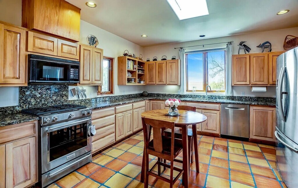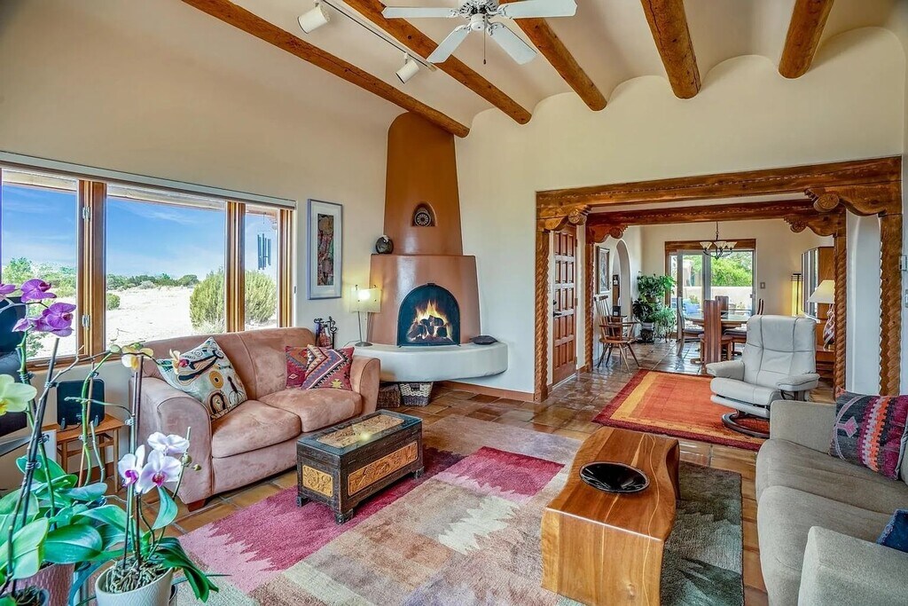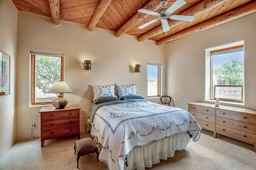 $3,700/month - 3 Bedroom | 2 Bathroom | 2 Car Garage Escape to serene living in this charming, unfurnished 3-bedroom, 2-bath home in the picturesque community of El Dorado. This inviting residence features beautiful tile floors in the kitchen and living room, complemented by cozy carpet in the bedrooms. Experience the warmth of traditional wood viga ceilings and a fireplace in the spacious living room, perfect for chilly evenings. The open kitchen boasts elegant granite countertops and a skylight that fills the space with natural light, extending into the main hallway. Enjoy the luxury of two enclosed outdoor patios located on opposite ends of the house, ideal for relaxation or entertaining. With wood trim throughout and a convenient 2-car garage, this home combines style and functionality. El Dorado offers a quiet community feel with amenities like a grocery store, bank, and an elementary school. The ever expanding community has great local eats including upper crust pizza, Fusion Tacos and The Santa Fe Brewing Company. Plus, you're only 20 minutes from the vibrant heart of Santa Fe. Make this your sanctuary today! Air Conditioning Radiant Heat Stainless Steel Appliances Enclosed Patio 2-Car Garage Offered Unfurnished Only $3,700/month + utilities One year lease required First Month, Last Month, and Security Deposit required. Tenants Transfer All Relevant Utilities Into Their Name