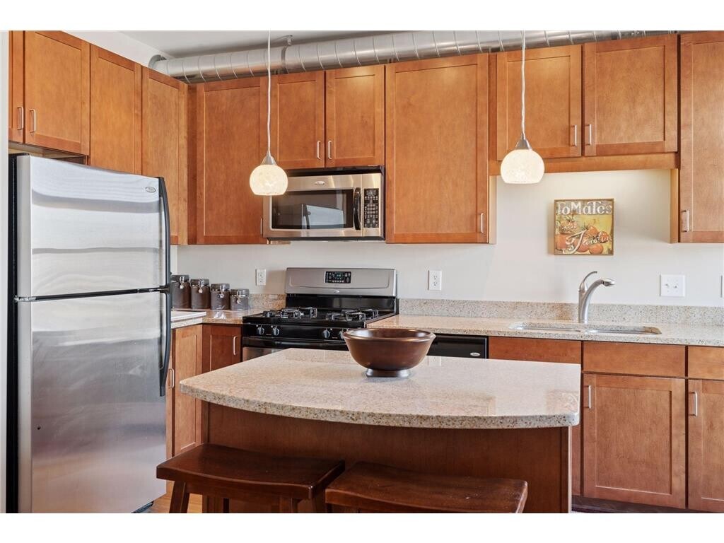 Charming 1BR/1BA condo in the heart of Eat Street offering a bright, open feel with large windows and hardwood floors throughout. The kitchen features granite countertops, stainless steel appliances, a gas range, and a center island, while the unit also includes a full-size in-unit washer and dryer, generous storage, modern finishes, and one indoor heated parking space. Enjoy walkable access to great restaurants, cafes, and shops, plus convenient connections to downtown, Uptown, the Minneapolis Institute of Art, and major highways including 35W and I-94.
