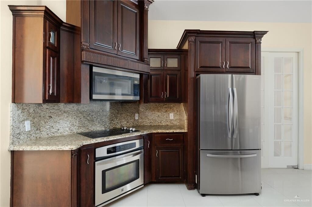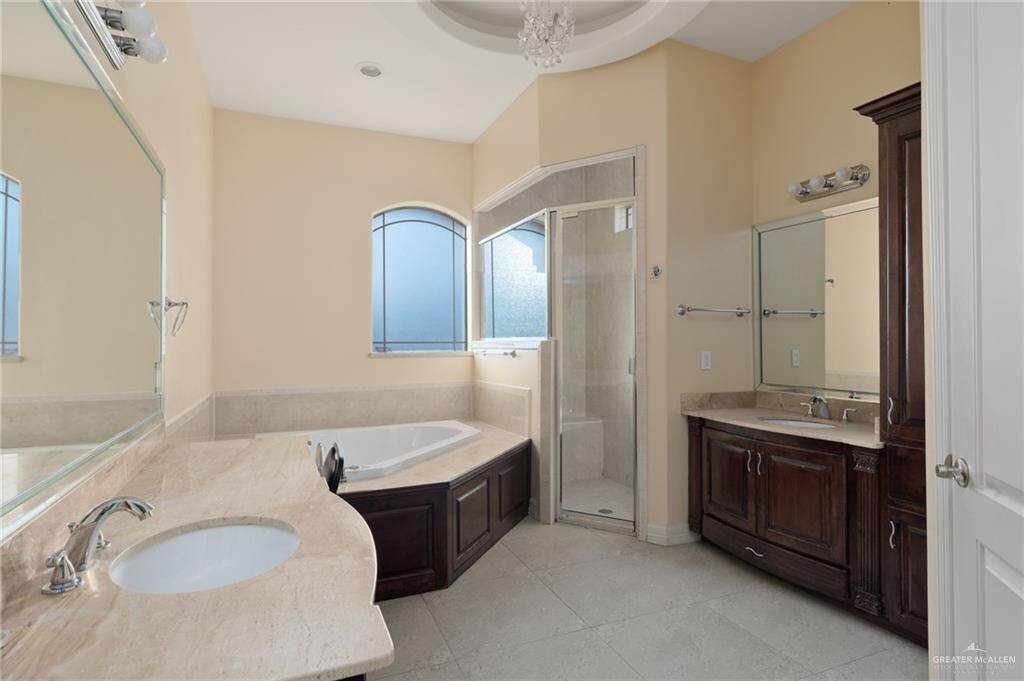 This beautiful 4 bedroom 4 1/2 bath home with an office is located in a gated community and offers high decorative ceilings,tile through-out,and a spacious layout. The home features a large living room,two dining room,split bedroom layout with each bedroom having its own personal bathroom. The kitchen opens up to a family room and is the center of the home. It is located in close proximity to shopping centers,restaurants and hospitals,It is across the street to RGV Healthcare and close to the movie theater,making it an ideal place to live. Call today for your private showing