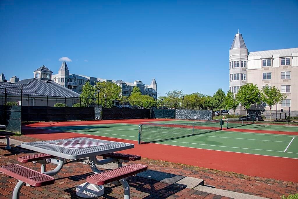 PORT LIBERTE - Beautiful and sunny home with large living/dining area, gleaming wood floors and plenty of windows for a bright airy feel. Gourmet style kitchen with granite counters and breakfast bar, stainless steel GE Profile appliances, cherry cabinets and gas cooking! Open concept social area with French door leading to private balcony. Large bedroom with walk-in closet. Luxurious limestone bath with extra deep spa like soaking tub. Bedroom is sunny and bright with its’ own walk-in closet. Rent includes: parking, hot water, gas cooking and use of all of the luxurious amenities that Port Liberte has to offer. They include: two pools, tennis and professional fitness center with sauna. Easy commute via on-site ferry to Downtown NYC or shuttle to the Grove Street Path. Available: October 1st or 15th