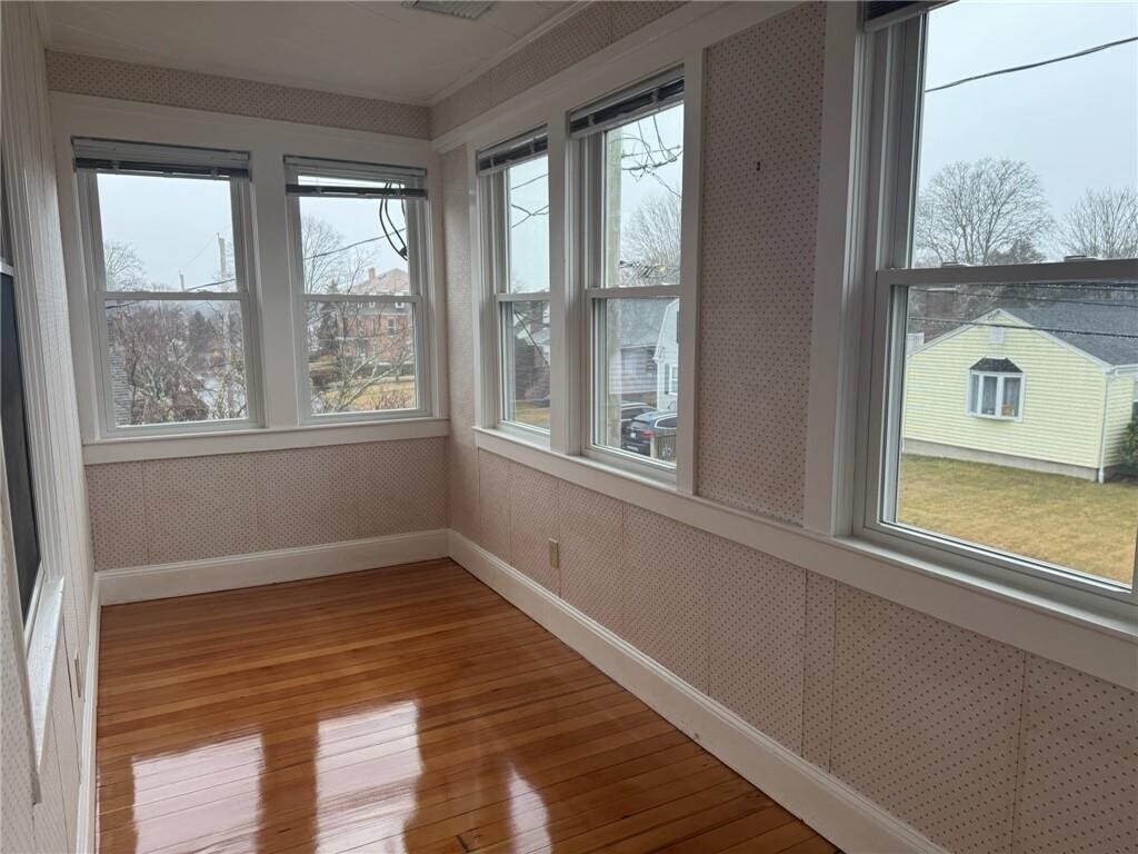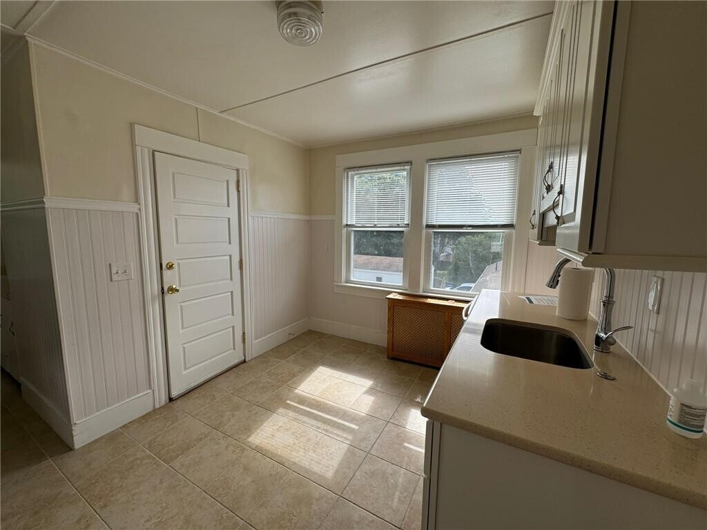 A large and spacious Newly updated 3 bed/1 bath apartment with a large and bright sun room. Located in quiet neighborhood Just outside the hustle and bustle of Downtown. A short 2 minute walk to a public park with tennis courts. Less than 10 minute bike ride to Easton's Beach,and a short ride to Newport Naval Station. This bright unit has a large living room,dining room,sun room/ porch,2 large bedrooms with a third bedroom that is best suited as an office. All newly refinished hardwood floor throughout. Newly added Central air,a modern tiled kitchen with new appliances,and new counter-tops,shared use of the back yard,a brand new Washer/dryer,refrigerator,oven/stove,microwave,and garbage disposal,and Central Air!! MLS ID 1406307