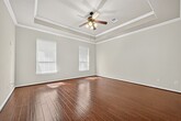 Located in the Creekside Park neighborhood,near community amenities and top-rated schools this 2-story home sits on a large cul-de-sac lot with a landscaped yard and covered front porch. The entry features a stone arch and stained front door. Walls recently painted. Wood and tile flooring extend through the main living areas. The living room has high ceilings,a gas log fireplace,and windows overlooking the covered patio and backyard. The formal dining room and a study with French doors provide additional living space.The island kitchen includes granite countertops,tile backsplash,stainless steel sink,gas range. The breakfast area is adjacent to the kitchen.The downstairs primary suite offers high ceilings,a walk-in closet,dual sinks,jetted tub,separate shower,and private toilet area.Upstairs features a game room,three bedrooms,and a full bath with dual sinks.Additional features include double-paned windows with 2-inch blinds,recessed lighting,crown molding,ceiling fans. MLS# 60869003