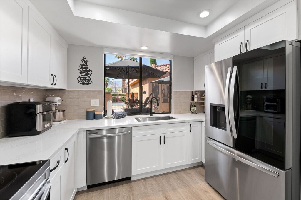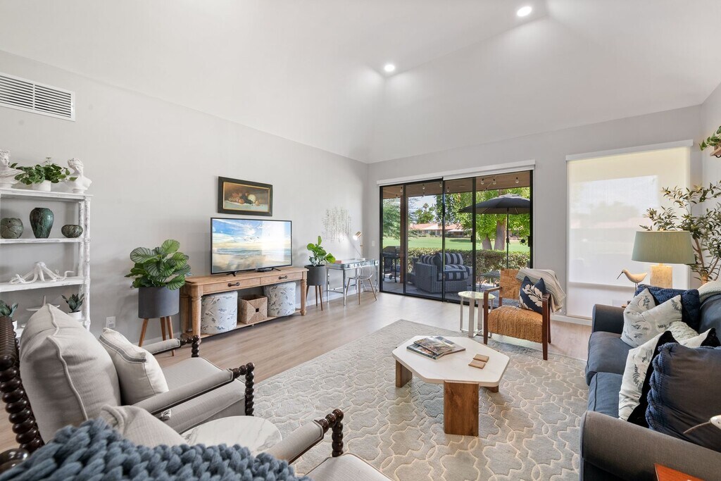 Season | October - April: $$ - $7,580 per month Summer | May - September: $$ - $4,200 per month Available for Seasonal Rental Only 1 to 6 Months. This property is offered exclusively for short-term seasonal stays. Long-term leases beyond 6 months are not available. Dates go fast! For the most up-to-date availability and to explore all of our properties, please visit APEK Rentals online. You'll find live calendar dates and easy booking options there. Wake up to breathtaking mountain sunrises and fairway views in this beautifully updated 2BD/2BA Seville model condo located in the gated Sunrise Country Club. This stylish, single-level home features a remodeled kitchen with quartz countertops, spacious bedrooms, and a private back patio that opens directly to the 7th fairway. Enjoy luxury community amenities like 21 pools, golf, tennis, pickleball, and a fitness center, all within walking distance. This one-of-a-kind Seville model condo has been thoughtfully designed with comfort and style in mind: Open-concept living & dining area with tray ceiling, recessed lighting, and panoramic views of the golf course Remodeled kitchen with quartz countertops, custom cabinetry, dry bar, and direct access to the patio—perfect for entertaining Primary bedroom suite with sliding doors to the patio and an updated en suite bathroom featuring a double vanity and walk-in double shower Guest bedroom with large wall-to-wall closet and tranquil courtyard views Double-door entry, single-story layout with no interior steps Laundry in garage | Central air & heat | Laminate flooring throughout Whether you're enjoying a quiet morning coffee on the patio or unwinding after a day of golf, this home offers an ideal blend of indoor luxury and outdoor relaxation. What You’ll Love: Stunning golf course & mountain views from the back patio Stylish, fully updated interior High ceilings, natural light, and a spacious layout 2-car garage + driveway parking Access to 21 pools, golf, tennis, spa, pickleball, and more Gated community with 24-hour security Minutes from Palm Springs, El Paseo, shopping & dining Perfect for couples, snowbirds, or anyone seeking a peaceful, resort-style getaway in the heart of Rancho Mirage.