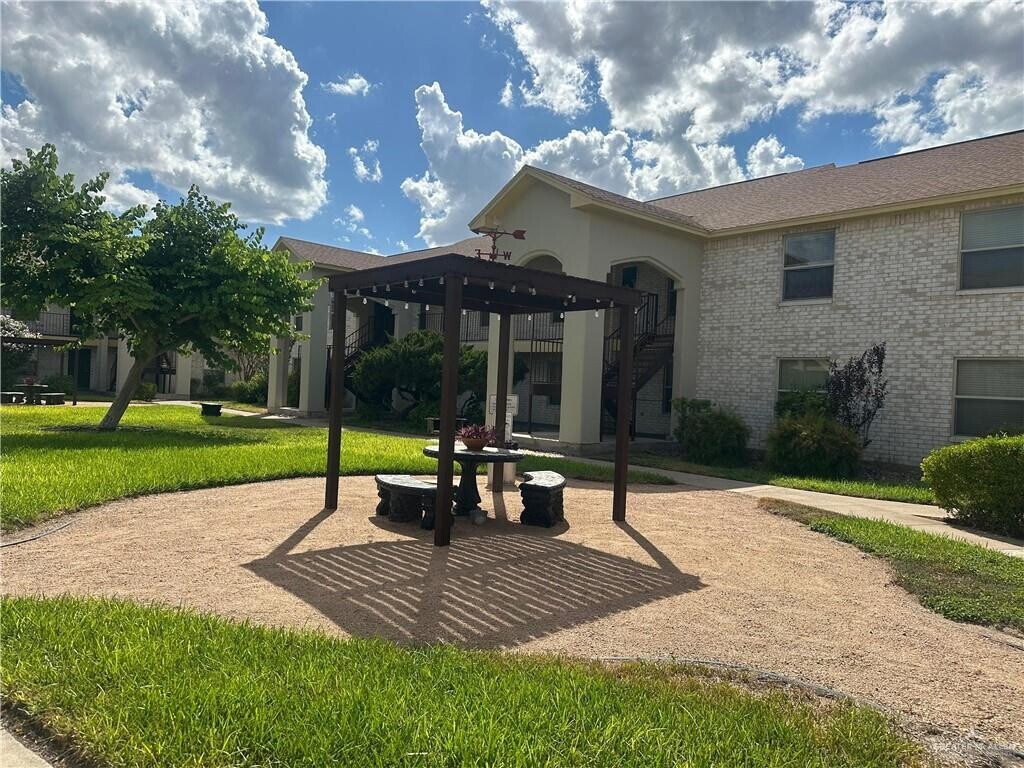 Now Leasing – North McAllen! Spacious and well-located upstairs apartment featuring 2 bedrooms and 1 bathroom,now available for lease! This beautifully maintained unit offers comfort and convenience with ceiling fans,a dishwasher,and an in-unit washer and dryer. Enjoy two assigned covered parking spaces and the lushly landscaped courtyard,complete with two BBQ areas—perfect for relaxing or entertaining guests. Ideally situated within walking distance to the Bicentennial trails,public library,local farmers’ market,restaurants,entertainment,and medical facilities. Just minutes from McAuliffe Park,where you’ll find basketball courts,a lake,playgrounds,and a scenic 1.3 km running trail. High-speed internet and cable available for $50/month. Pet restrictions apply. Comfort,location,and style – all in one place!