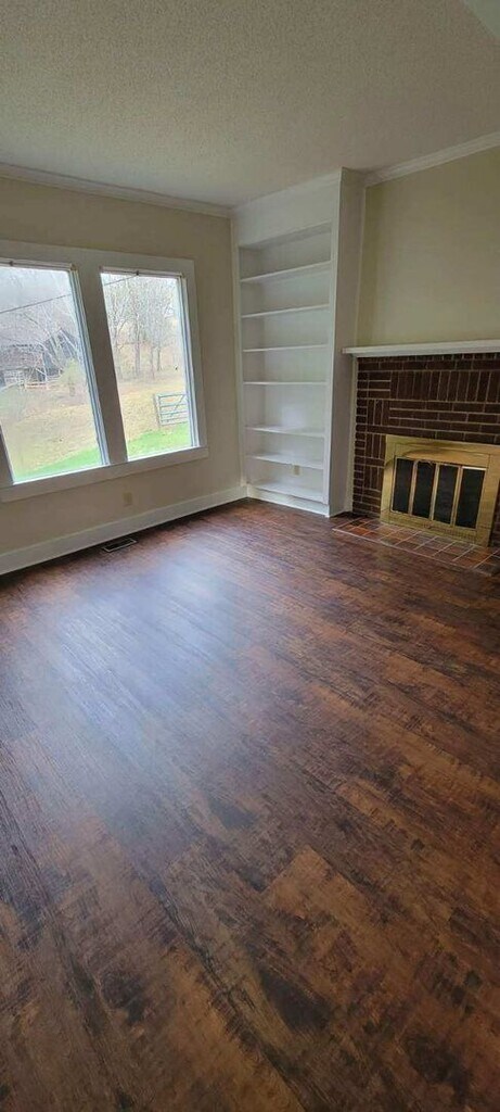 (Photos do not reflect all new flooring and paint) 1940's updated Farmhouse - 3Bedrooms, 2.5baths, formal dining room, office w/faux fireplace, master bedroom w/faux fireplace, family room, sunroom, deck, porch, HVAC, security system available at tenants cost, 2 car garage. Mowing provided by owner. (The pasture area and upstairs of garage not included in the rent)