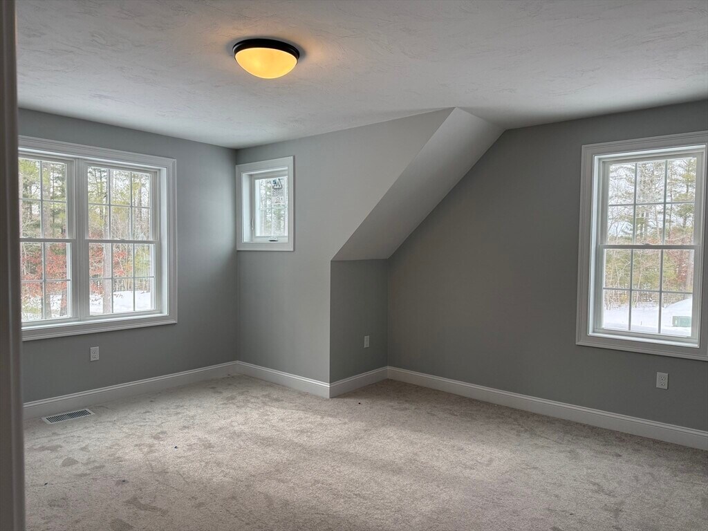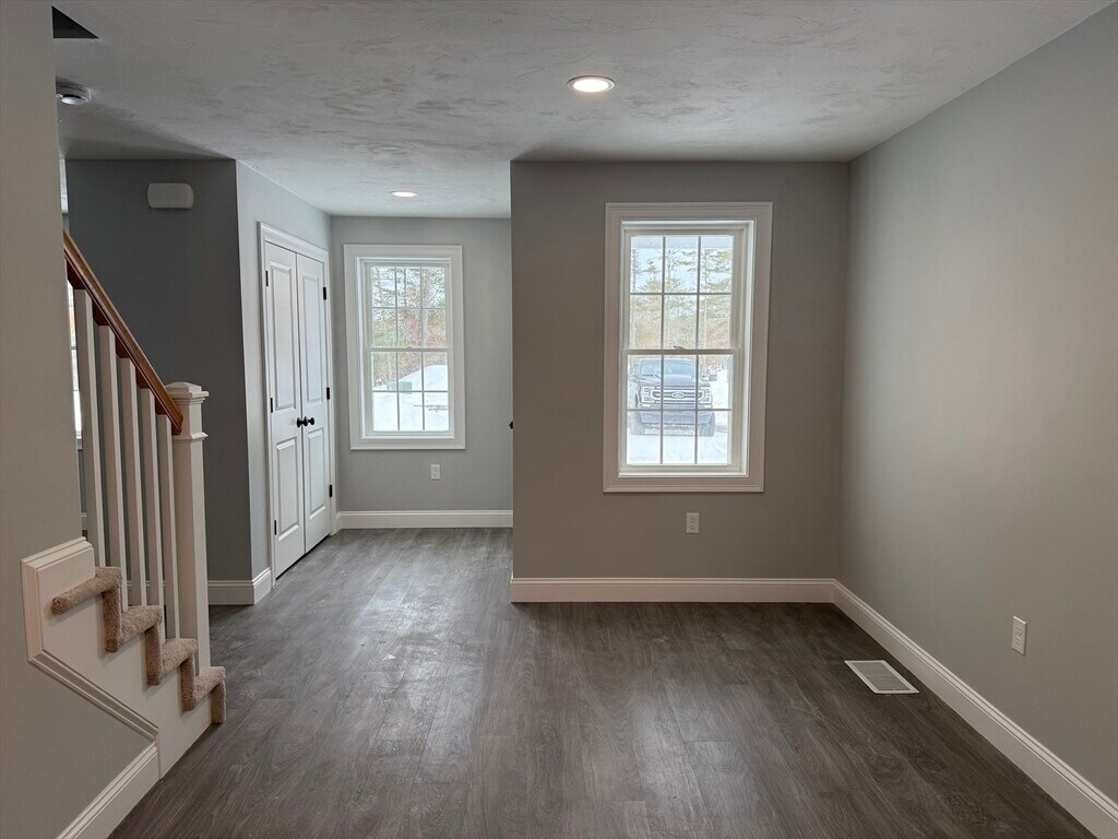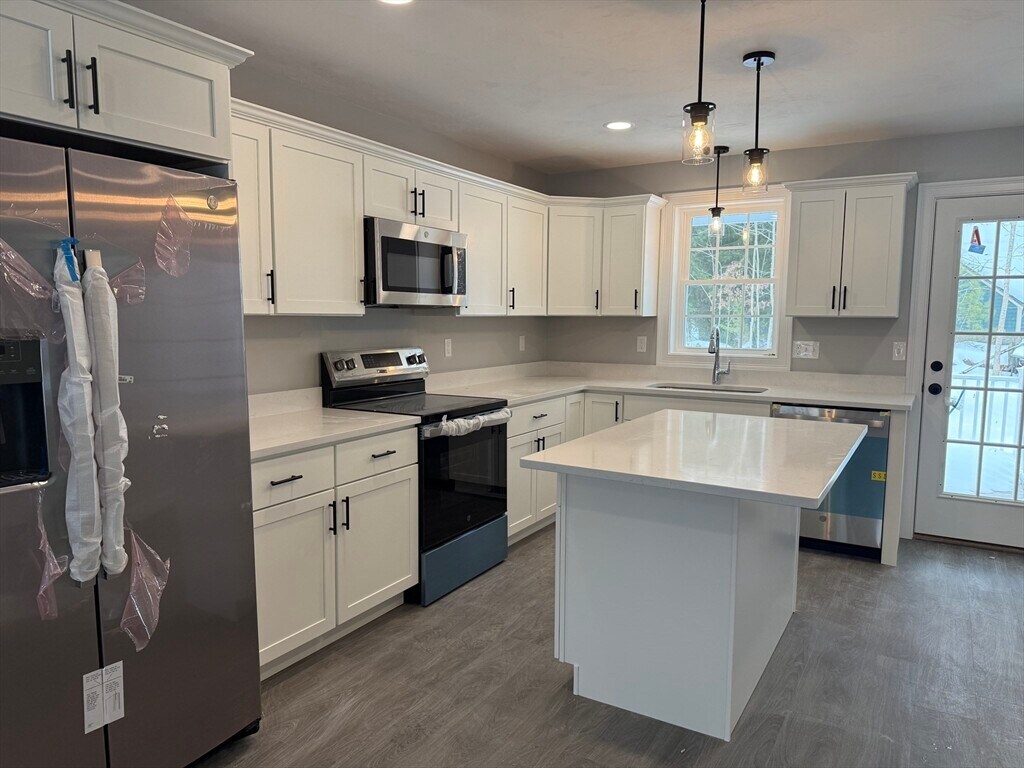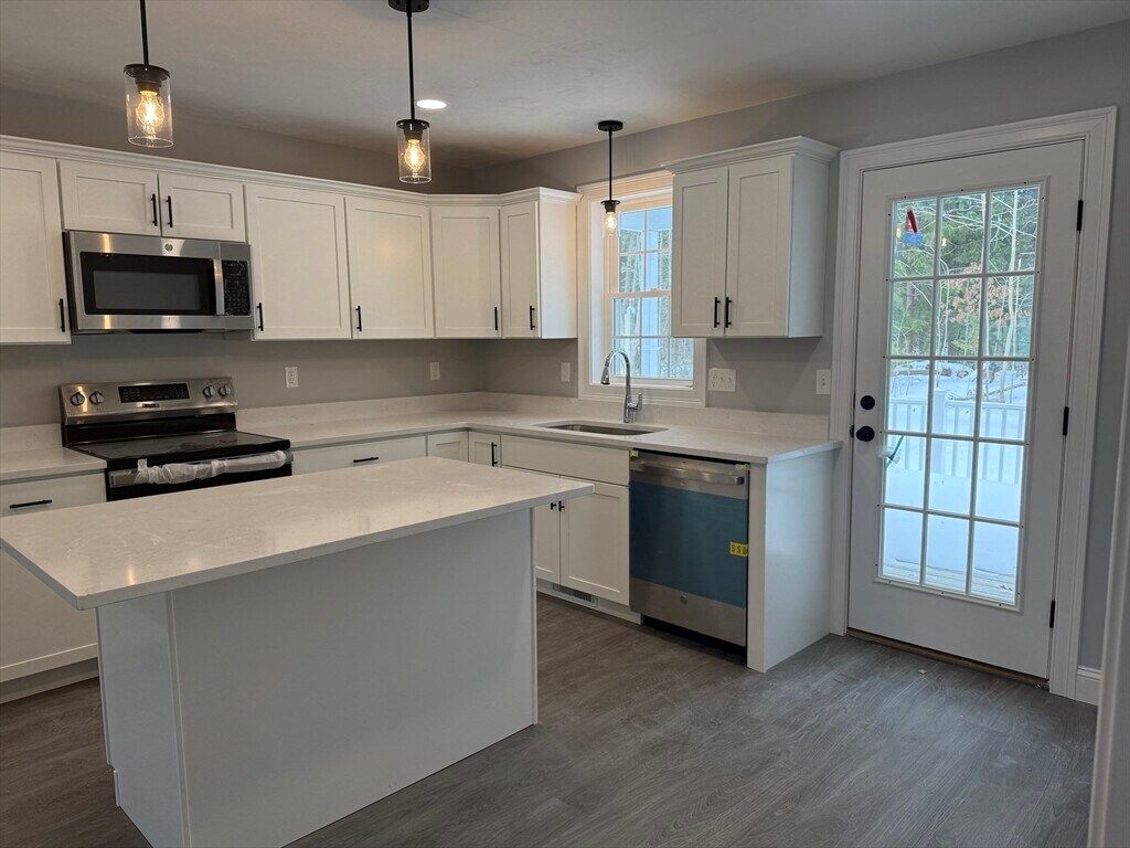 Exciting opportunity to rent a rare,brand-new 4-bedroom condominium offering 2,280 square feet of beautifully designed living space. This tastefully finished condo features a modern layout ideal for comfortable living and entertaining. The first floor offers a spacious primary bedroom with a private en-suite bath,along with a stunning kitchen featuring crisp white cabinetry,modern black hardware,stainless steel appliances,and a large island with quartz countertops. Ample cabinetry provides excellent storage. Sliding doors off the kitchen lead to a private balcony overlooking manicured lawns,perfect for relaxing or entertaining. A convenient half bath completes the main level. Upstairs are three generously sized bedrooms and a full hallway bath,offering flexible space for guests,family,or a home office. Additional highlights include central air conditioning and low-maintenance living. Ideally located minutes from a highway exit with easy access to Cape Cod,Boston,Plymouth,Etc MLS# 73475967