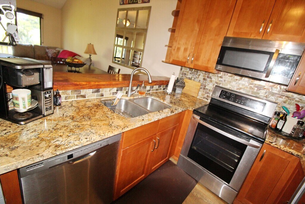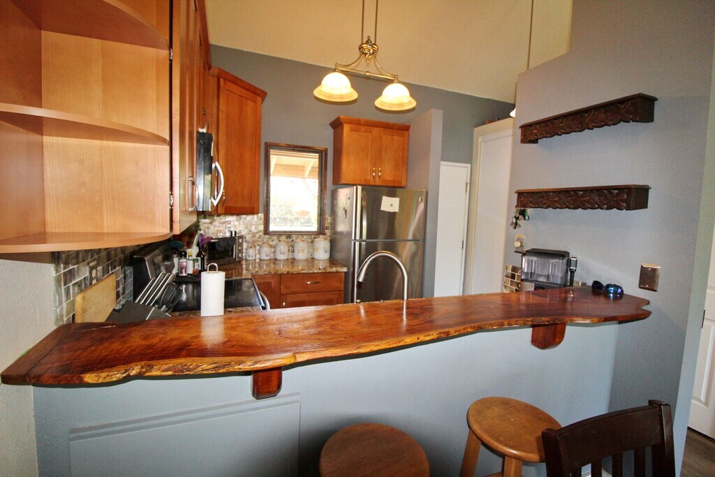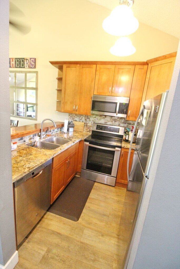 Enjoy island living in this beautifully furnished and tastefully remodeled 2-bedroom, 2-bath condo in the desirable Haleakala Gardens community. This upper-level unit features vaulted ceilings and an abundance of natural light, creating a bright and airy atmosphere throughout. The upgraded kitchen is equipped with granite countertops, a polished wood bar top, stainless steel appliances, and stylish pendant lighting—perfect for both everyday living and entertaining. The open layout flows into a spacious living area with oversized windows and wood-grain luxury vinyl flooring. Stay comfortable year-round with three A/C units and four ceiling fans. For added convenience, the unit includes an in-home washer and dryer. The primary suite features a beautifully designed walk-in shower with tile, stone, and glass finishes, along with updated vanities in both bathrooms. Ideally located just a couple of blocks from the beach and near the new high school, this home is also minutes from shopping, dining, grocery stores, and outdoor recreation. Enjoy easy access to Kalepolepo Beach, Waipuilani Beach Park, and the Kihei Aquatic Center. Community amenities include: • Resident car wash area • Quarterly pest control (interior and exterior) • Dedicated kayak and surfboard storage Rental Details: • $2,900/month + utilities • 12-month lease required • Renters insurance required • One small dog (under 30 lbs) may be considered • Contact Pali Kai Rentals for additional information