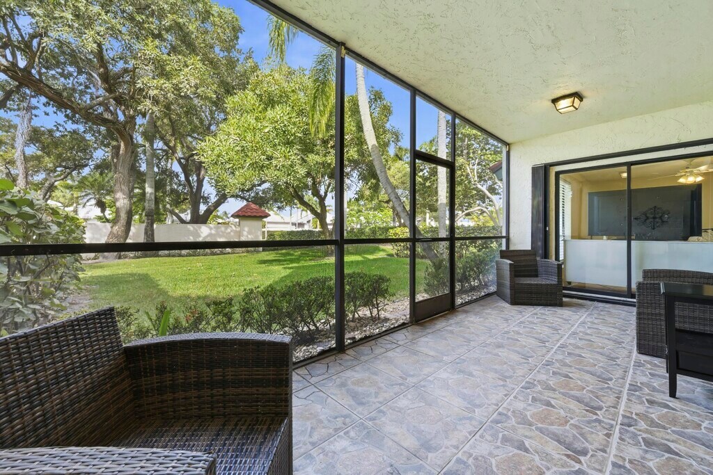 Welcome to a fully furnished and turn-key seasonal rental in the highly desirable Lexington Green community of PGA National. This bright and inviting 2-bed, 1-bath home features an open living area, comfortable furnishings, and a screened-in balcony overlooking peaceful green space--perfect for relaxing after a day in the Florida sun. The kitchen offers plenty of cabinet space and quality appliances, and both bedrooms are well-appointed for short-term stays. Additional conveniences include an attached one-car garage, in-unit washer/dryer, and ample guest parking. Nestled in the heart of Palm Beach Gardens, PGA National offers one of the best locations in the area--minutes to world-class restaurants, Alton Town Center, Midtown, Gardens Mall, top-rated golf courses, serene walking trails,