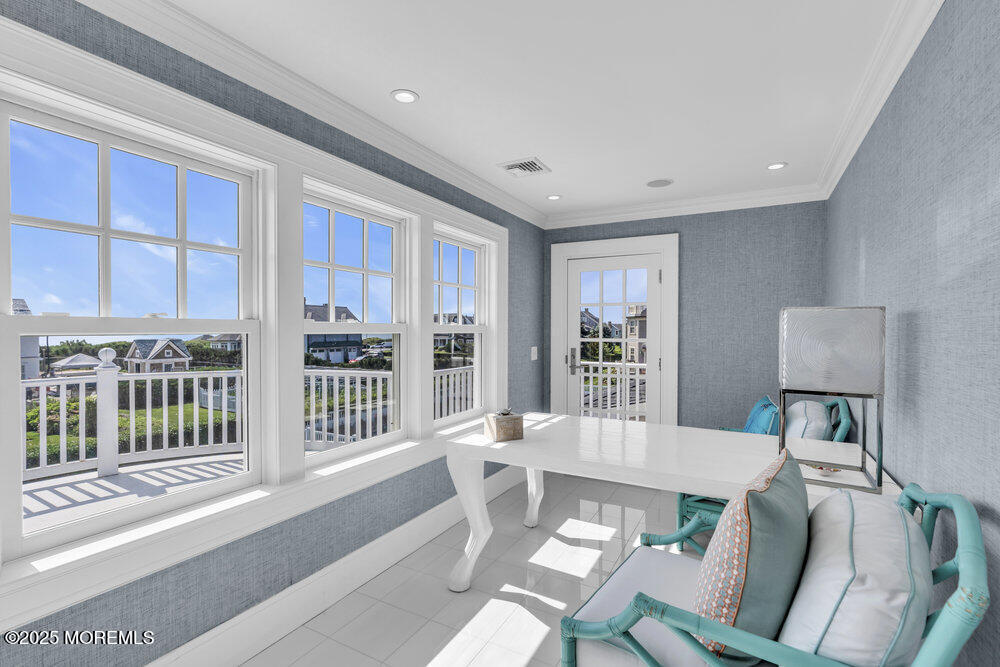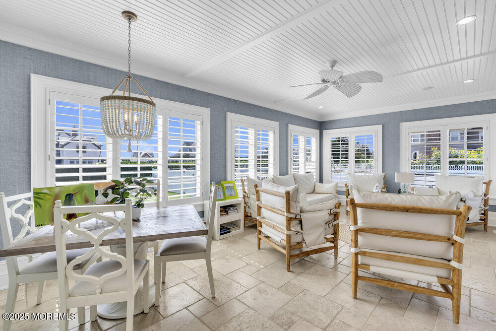 One of Spring Lake's Finest Coastal Retreats-Now available 2 wks summer '26. Step into luxury in this expansive,newly renovated home,just steps from the beach,and enjoy breathtaking Ocean Views from several vantage points. Complete with private pool and spa,the outdoor living space is designed to impress,featuring a fire table,large outdoor kitchen,TV and oversized yard. Enjoy the sunrise on the wraparound front porch,sip your coffee on the screened in back porch or unwind in the serene sun room. Inside,a designer kitchen combines elevated style with everyday function making every meal special. Offering 5 spacious bedrooms,8 bathrooms and a generous 3rd floor loft there's room for everyone. The fully finished basement features Movie Theater,Game room,TV Lounge & bathroom