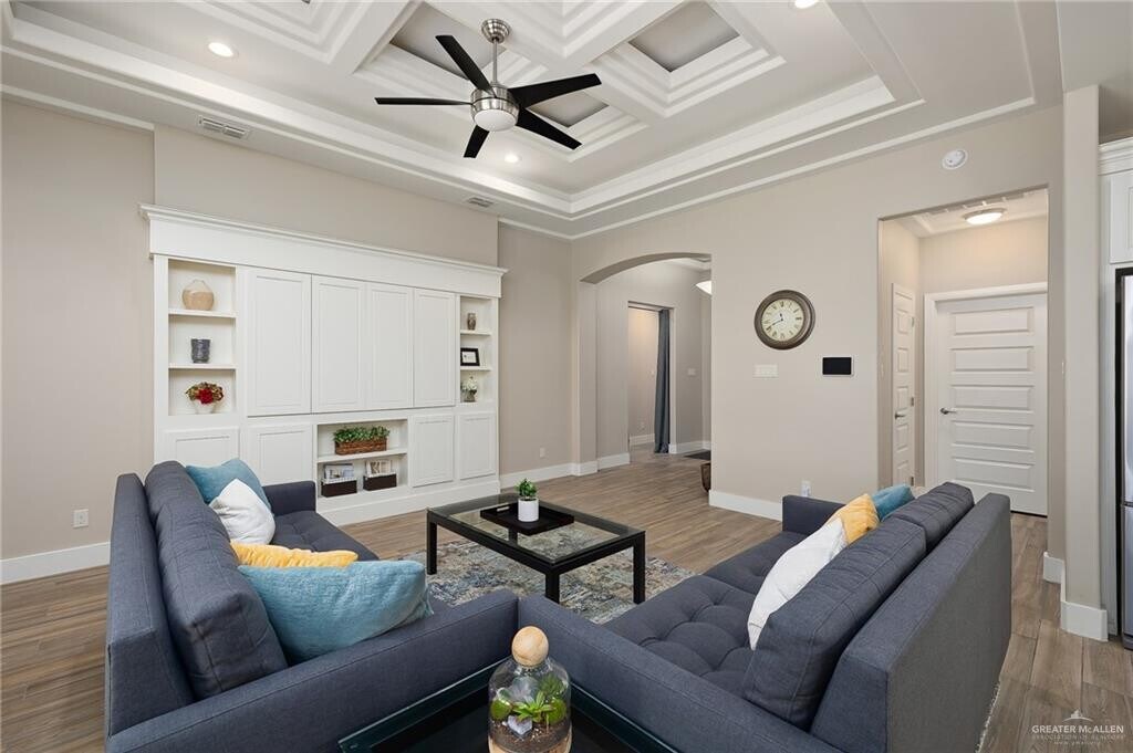 Impeccable rental home located in the gated Camden Village community in the highly desirable Southwest Edinburg/North McAllen area. Conveniently close to grocery stores,restaurants,hospitals,schools,and shopping. Open-concept living and dining with a spacious backyard. Features include energy-efficient dual-pane windows,spacious bedrooms,and a modern kitchen with custom shaker-style cabinets,pullout drawers,large island,walk-in pantry,and stove,microwave,oven,and refrigerator included. Additional highlights include custom front door,built-in entertainment center,wood-look porcelain tile,stamped driveway and sidewalk,ample garage storage,and community pool access. Prime location—schedule your showing today!