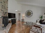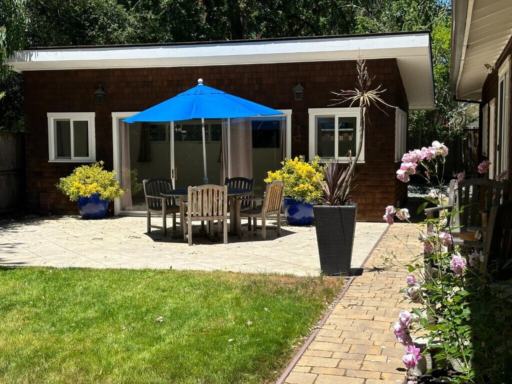 Nestled on a quiet tree-lined cul-de-sac this charming Craftsman-inspired single-story home sits on a level 13,746 sq ft lot in a highly desirable Central Woodside location-just a short stroll to the Village. The remodeled 3 bedroom 2 bath residence features hickory hardwood & stone flooring throughout. Vaulted ceilings & French doors create a bright open living & dining area filled with natural light. A wood-burning fireplace/gas starter serves as a warm focal point of the living space. The carefully designed kitchen showcases custom white maple cabinetry granite countertops & stainless steel appliances all overlooking an inviting front porch. Both bathrooms feature custom cabinetry & countertops while the primary bath is enhanced with marble-lined walls surrounding the bathtub & shower. The spacious primary bedroom offers generous closet space & sliding glass doors that open to a private porch & backyard. Adding exceptional flexibility a detached cabana (approx 365 sq ft) expands the living & entertaining space-ideal for home office, art studio, exercise room or meditation retreat. The beautifully landscaped grounds feature native plantings, stone porch, brick walkways & a grassy rear yard. 2-car attached garage acclaimed Woodside schools & convenient access to 280. MLS # ML82038972