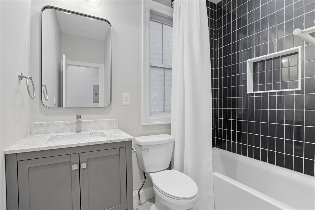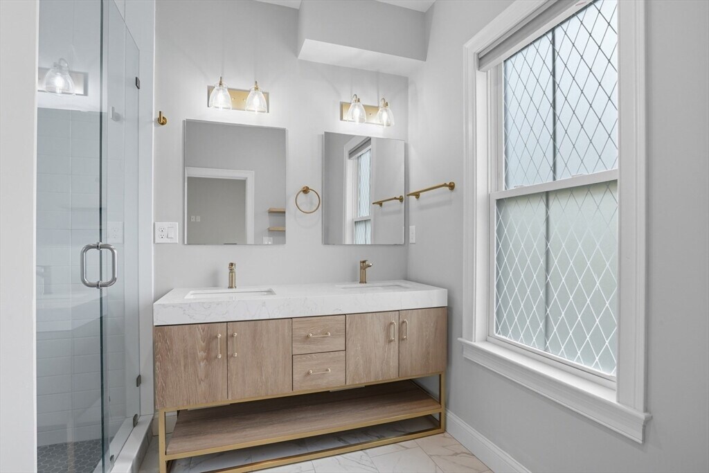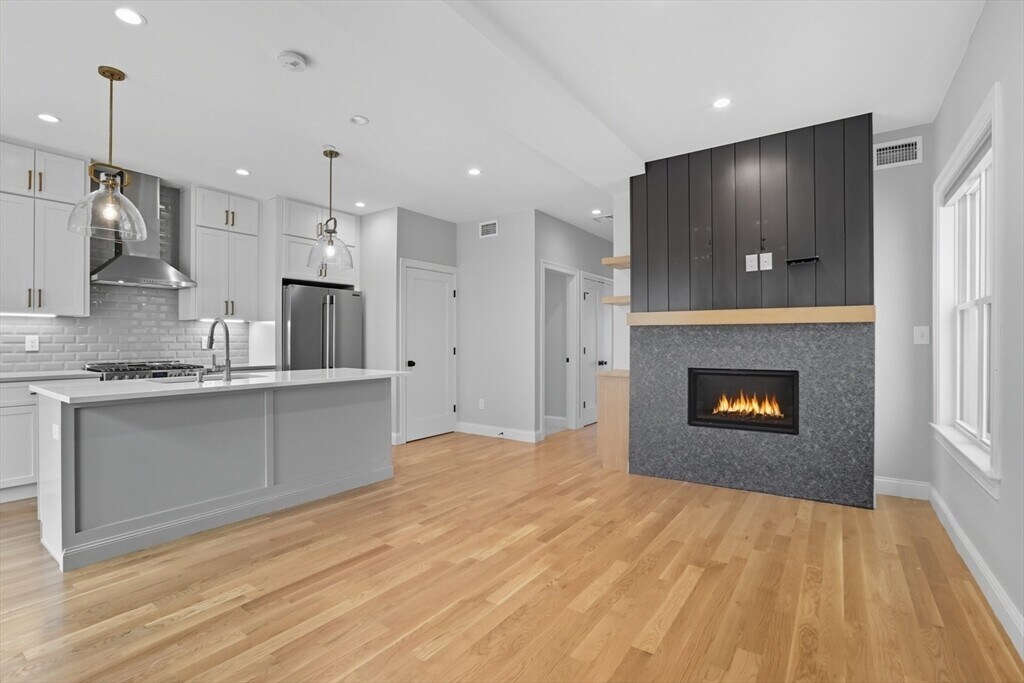 This luxurious 2 bedroom 2 bathroom condo is located in East Boston. Great open layout,with high end finishes. Living area features a Napolean Linear gas fireplace with built-ins flanking the fireplace. Beautiful kitchen with stainless steel appliances,gas stove with vented hood,ample cabinet space,quartz countertops,center island with built in cabinets,full dishwasher and built in microwave. This dream kitchen space is great for entertaining guest. White oak hardwood floors throughout. Common bathroom has a tub. Master bathroom has a double sink vanity. Washer and Dryer in Unit. Enjoy time outside on your private back deck. Large designated storage space in the basement. MLS# 73435480