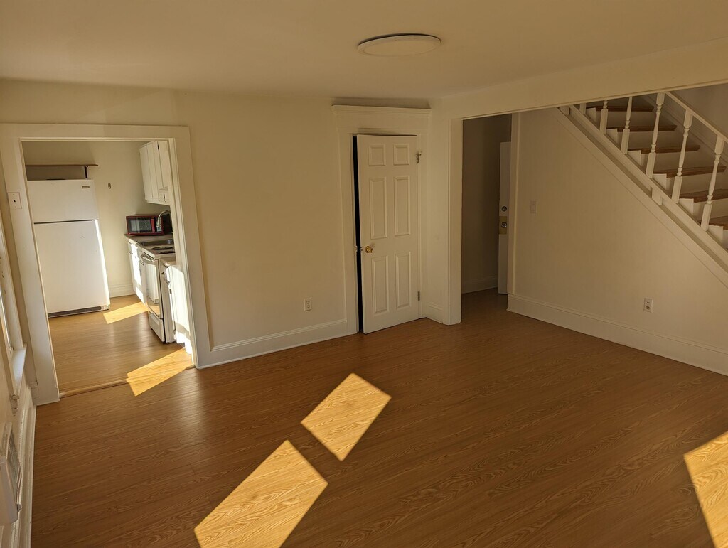 Large 3 bedroom apartment. South-facing with many windows, natural light all day. Free, shared laundry in building. Included in rent. Private parking. Extra room on first floor, could be turned into a living room or office. Located on the corner of Oak and Kansas, one mile from downtown Bridgton. Separate electric heater in each room. Front and back yards, feel free to garden. Water included. Electric is not. No smoking anywhere inside or outside property. Peaceful neighbors in the building. We select carefully. Please put in one application per adult here: If you qualify, we will contact you within a couple of days to schedule a showing. If Zillow hides the link, you can text me at . Thanks, Paul Property Manager America Properties, Inc.