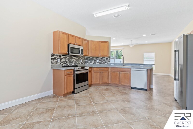 THIS FULLY FENCED, SPACIOUS 3 BEDROOM + DEN, 2 BATHROOM HOME FEATURES LIKE NEW TILE AND WOOD FLOORING THROUGHOUT... EAT-IN KITCHEN WITH LIKE-NEW STAINLESS STEEL APPLIANCES, GLASS TILE BACKSPLASH, COUNTER BAR, AND BREAKFAST NOOK... FOYER, FORMAL LIVING ROOM + ENCLOSED DEN WITH FRENCH DOUBLE DOORS... SPLIT BEDROOM PLAN, MASTER SUITE WITH WALK-IN SHOWER, WALK-IN CLOSET, DOUBLE SINK VANITY, AND CORNER ROMAN TUB... SEPARATE LAUNDRY ROOM WITH UPGRADED SAMSUNG WASHER & DRYER, 2 CAR ATTACHED GARAGE WITH ELECTRIC OPENER AND PRIVATE, FULLY FENCED BACKYARD. LOCATED IN THE DESIRABLE PINE GROVE NEIGHBORHOOD, WITH EASY ACCESS TO SCHOOLS, SHOPPING, TOWN CENTER, BEACHES, MAJOR HIGHWAYS, DAYTONA BEACH, AND HISTORIC ST AUGUSTINE... SOLID LANDLORD! AVAILABLE FOR MOVE-IN STARTING JUNE 15TH, 2026 LAWN CARE INCLUDED WASHER AND DRYER INCLUDED $2200 ON 3-YEAR LEASE $2300 ON 2-YEAR LEASE $2400 ON 1-YEAR LEASE