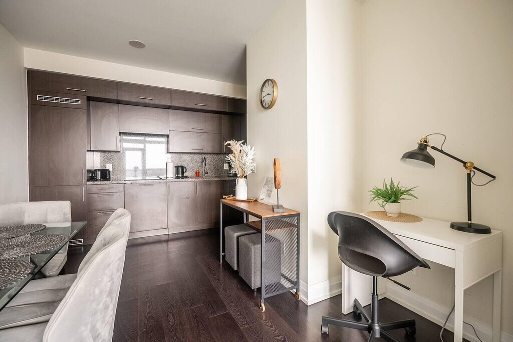 Feel at home in this stylish 1-bedroom unit with an amazing view in Downtown North York. This modern skyscraper offers direct indoor access to 2 subway lines from the building. This comfortable suite has everything you need. The fully functional kitchen includes tea, coffee, a kettle, a coffeemaker, and a toaster. There is also a washer and dryer. The bathroom includes towels, shampoo, conditioner, body wash, a hair dryer, and other toiletries. Free parking is included. A travel crib (for babies 0-18 months) and bed rails are available for $10 per item per night; please book in advance. Pets of small and middle size are allowed for a fee of $20 per pet per night; please confirm the opportunity prior to booking. Enjoy a unique location in a prime shopping area with entertainment facilities, bars, and restaurants. A big supermarket is located in the building, and downtown attractions are a 15-20 minute subway ride away. Guests must be 25 or over in order to check in. For reservations of 7 nights or more, it is possible to check-in from the age of 18. Pets must be carried in common areas. If smoking occurs inside, or there is damage to the unit or other house rules are violated, the guest will not have their deposit refunded. [SI]