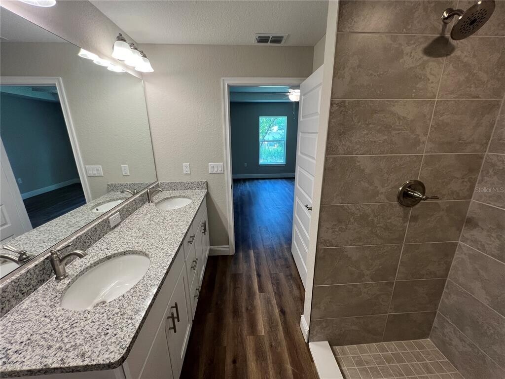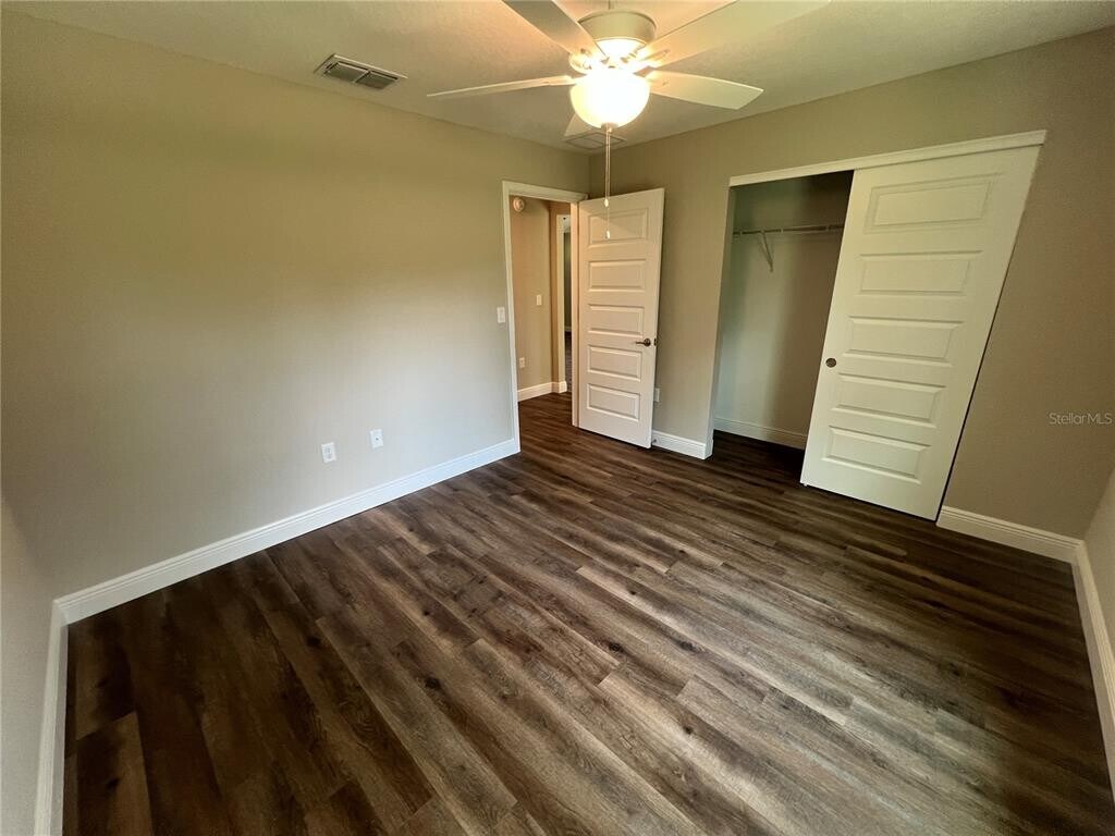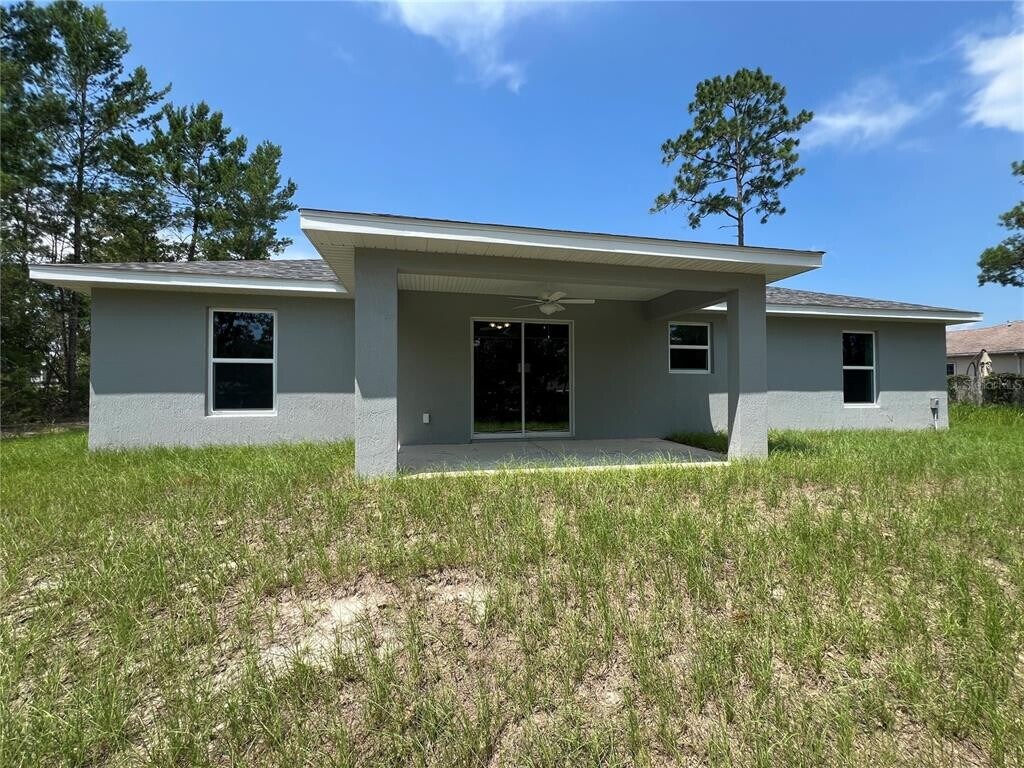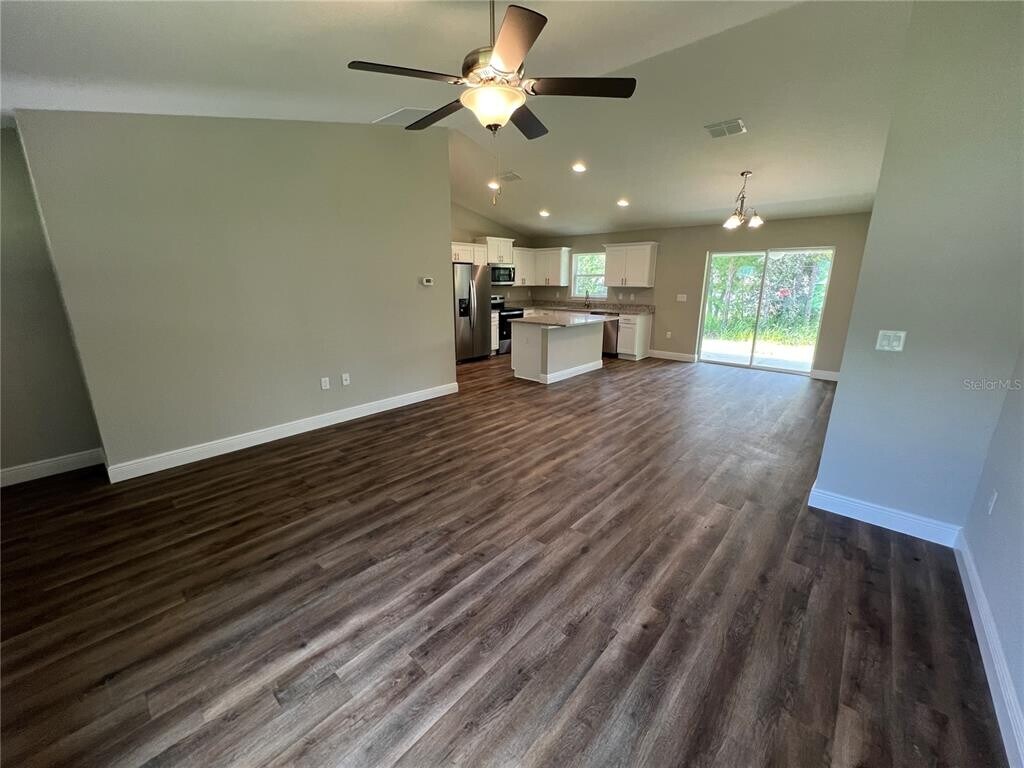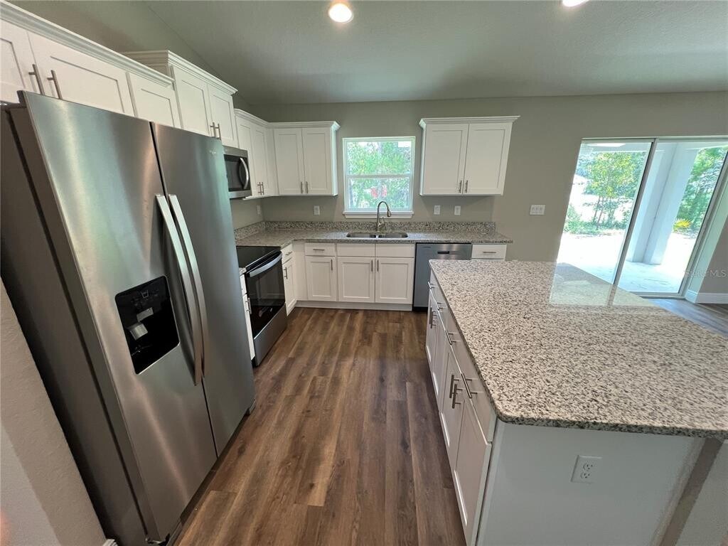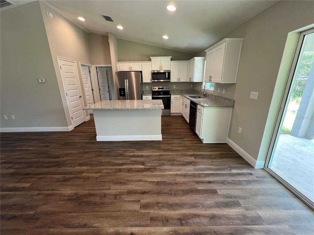 This stunning,never lived in,3 bedroom/2 bath single-family home offers modern living with an open floorplan and luxury vinyl plank flooring throughout. The spacious living area seamlessly connects to an updated kitchen,featuring quartz countertops,stainless steel appliances,and ample counter space. The perfect split bedroom floorplan features the the master suite to the left side of the home and the two guest rooms to the right. The master suite includes a large walk-in closet and an ensuite bath with a walk-in shower and double vanity. The two additional well-sized bedrooms provide comfort and flexibility for any situation. Step outside to a covered lanai,perfect for outdoor dining or relaxation,right off the kitchen and dining area. This home is perfect for those seeking style and convenience in a desirable Ocala location. MLS# A4664133