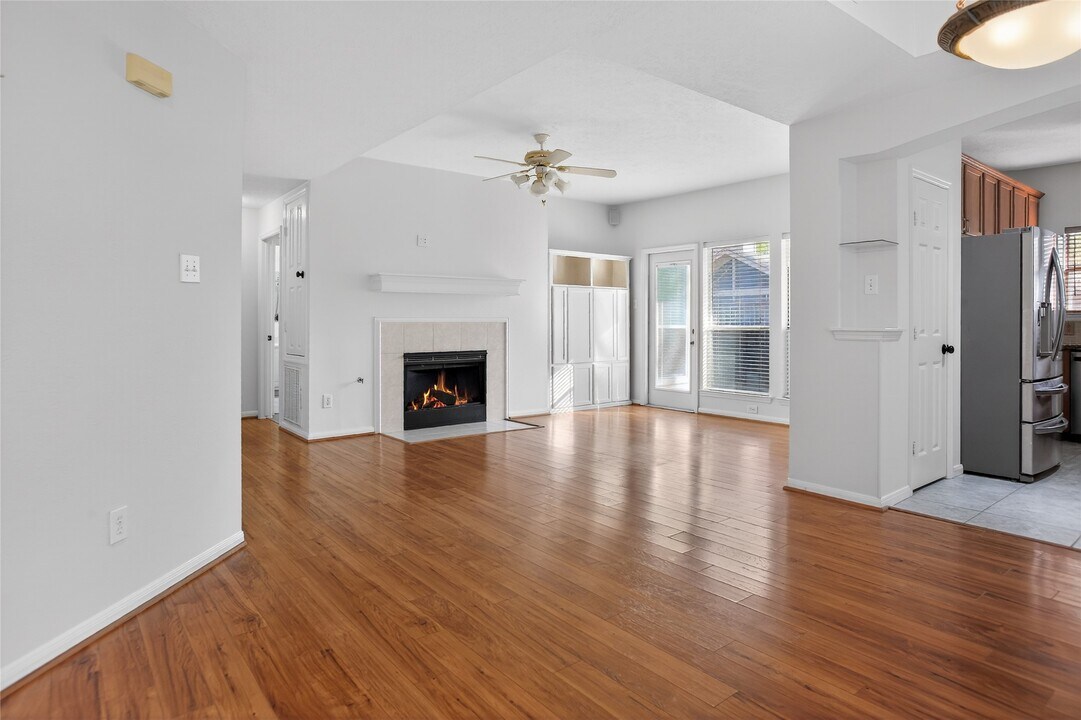 Great one-story townhome in The Woodlands! Amazing location with easy access to main intersections and I-45. Walk into a spacious open area which includes a nice breakfast/dining room area,a good-sized kitchen with LG® stainless steel appliances (refrigerator included),and a very inviting living room with a gas fireplace. Recently updated light fixtures and NO CARPET! You will also find two spacious bedrooms. The Primary bedroom has an en-suite bathroom with dual vanities,a walk-in shower,a large soaking tub,and a walk-in closet. The secondary full bathroom is down the hallway next to the second bedroom,which has beautiful windows and tons of natural light. Enjoy the privacy of the backyard with a great covered area to sit and relax,and plenty of extra space to entertain. The HOA covers grounds (except the backyard). Ready to move in MLS# 82151042