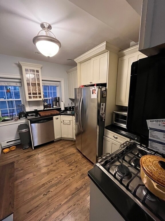 Unique Beacon Hill 4 level 2 bedroom/3 bathroom townhouse with a private roof deck. Unit is a true unicorn that includes central AC,in-unit laundry,finished basement,recently renovated hardwood floors and a library/home office. 2 bedrooms are on top 2 floors,they are very spacious with great closet space with full bathrooms on each floor. First floor has a living room and kitchen with stainless steel appliances,gas stove,dishwasher and a pantry with great built ins shelves. Basement is fully finished,has a living room and full bathroom with washer/drier in it. Additional storage room in the basement as well for larger items.Current tenant wants to move out 4/1 ideally,move in date can be as late as 6/1. Can be furnished for an additional cost. Garage parking spot available in MGH garage for $450/mo. Parking spot is 1 minute walk from the unit. MLS# 73471985