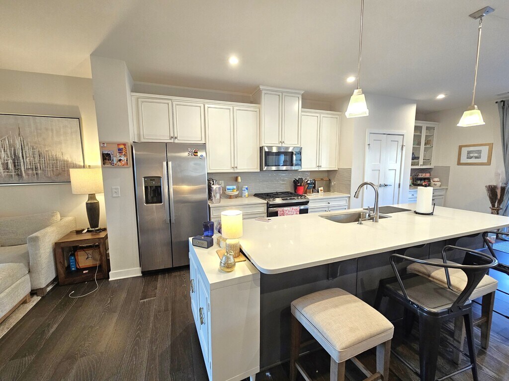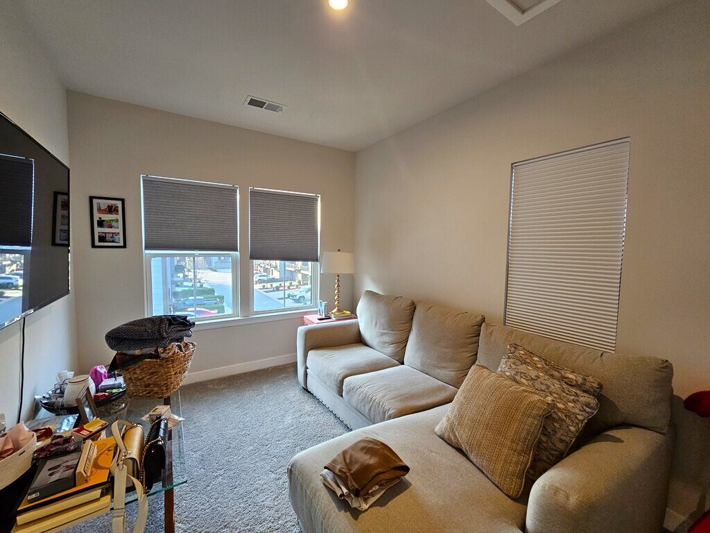 Modern, attractive garage-equipped 4-bedroom, 3-bath townhome offering approximately 2120 square feet. The interior presents a practical and well-organized layout designed for everyday living, with central A/C supporting year-round comfort and a combination of finishes that balances durability with a comfortable feel. LVP flooring in the living area provides a low-maintenance surface in the main shared spaces, while carpet in the bedrooms creates a softer finish in the home's more private areas. The overall design supports a clean and functional flow between common living areas and bedroom spaces, helping the home feel both usable and easy to maintain. The kitchen is equipped with stainless steel appliances, including a refrigerator, dishwasher, oven and stove, and microwave. Granite countertops add a durable work surface and contribute to the kitchen's updated appearance, while the kitchen island provides additional prep, serving, and gathering space for daily routines. Together, these features create a kitchen setup that supports everyday cooking, storage, and cleanup in a straightforward and efficient way. A 2 car garage adds protected parking and gives the property extra flexibility for storage, equipment, or general household overflow. Altogether, the interior combines practical features, useful square footage, and a layout centered on comfort and day-to-day function. Property features continue that same practical approach. A private balcony extends the living space beyond the interior and provides a dedicated outdoor area for sitting or routine daily use. The townhome is also part of an HOA setting with lawncare provided, which helps reduce exterior maintenance responsibilities and supports a more structured overall property environment. These features create a balanced setup that combines interior comfort with manageable exterior upkeep. The result is a home that emphasizes practical living space, useful amenities, and straightforward maintenance. The home's setting offers convenient access to Laurens Rd, Woodruff Rd, I-85, I-385, downtown Greenville, and the Swamp Rabbit Trail. The home is offered with a 12 Month Minimum lease term, and the security deposit is equal to one month's rent. Applicants should have income of at least 3 times the monthly rent and a minimum credit score of 630. Cats and small dogs under 40lbs are allowed.